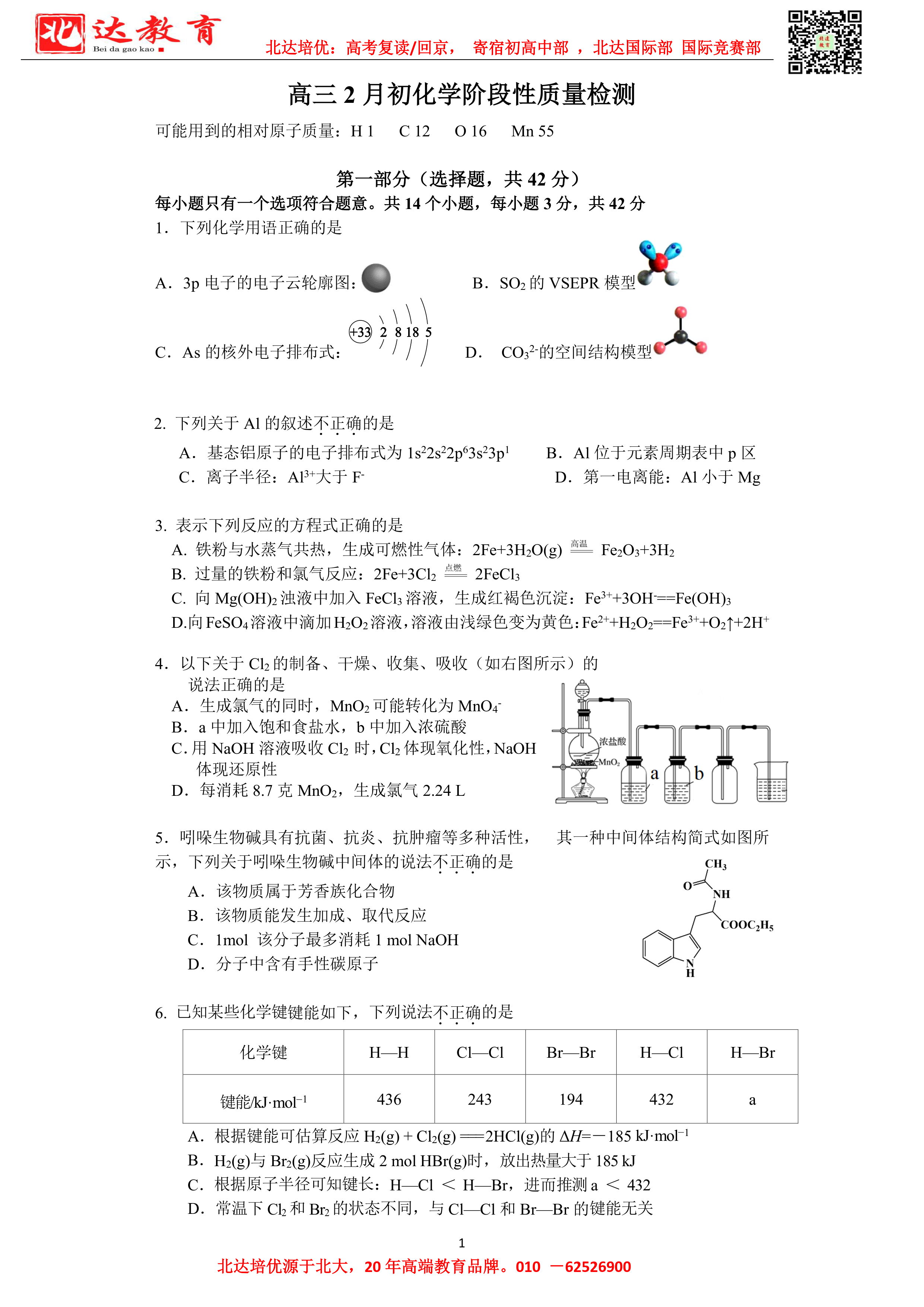 admw360高考复读学校整理了2023北京首师附高三2月开学考化学试题及答案,附高清电子版,欢迎为大家下载分享~
