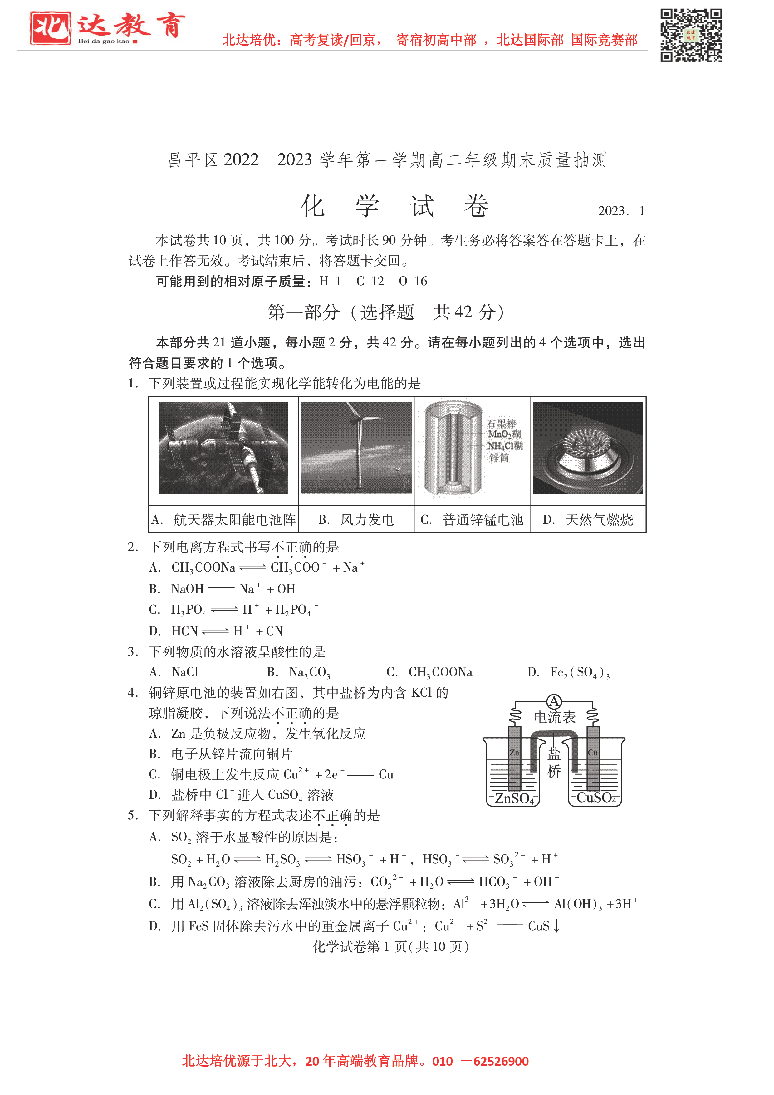 2023北京各区期末考试已陆续开始,为了方便同学们查找相关试题,admw360高考复读学校整理了2023年北京昌平区高二上学期期末化学试题及答案,附高清电子版,欢迎为大家下载分享~