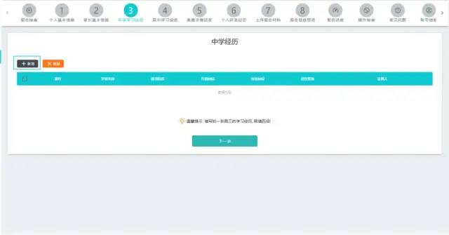 点击“新增”按钮,依次录入初中和高中学习经历。