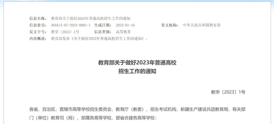 今年,新高考政策再次调整,新的调整就隐藏在这份《教育部关于做好2023年普通高校招生工作的通知》里。