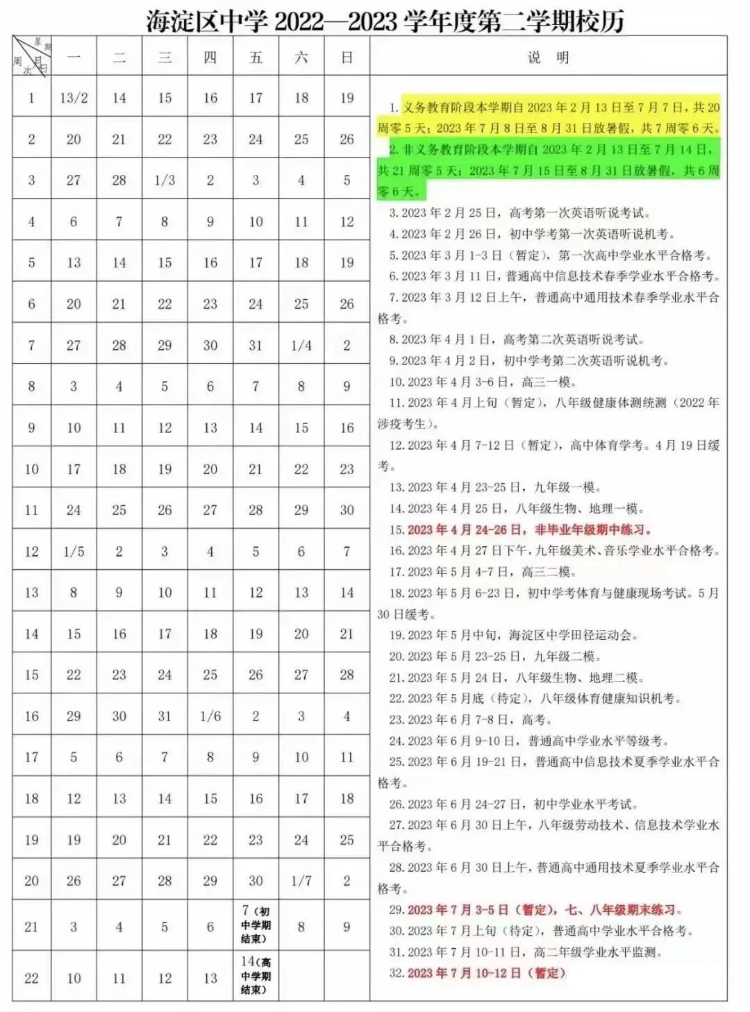根据收集到的海淀区中学第二学期校历安排可知,2023年4月3-6日将组织海淀高三一模考试,各科详细安排我们后续也会分享。