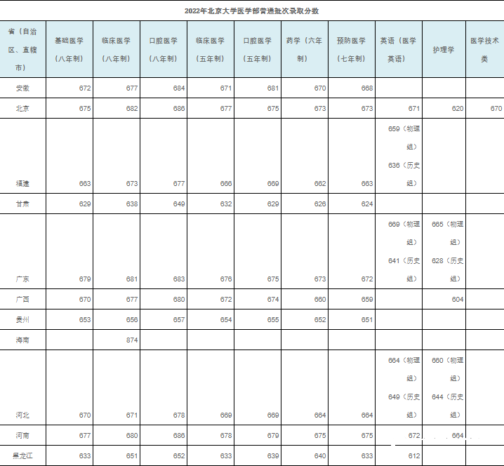 2022北京大学医学部各专业录取分数线
