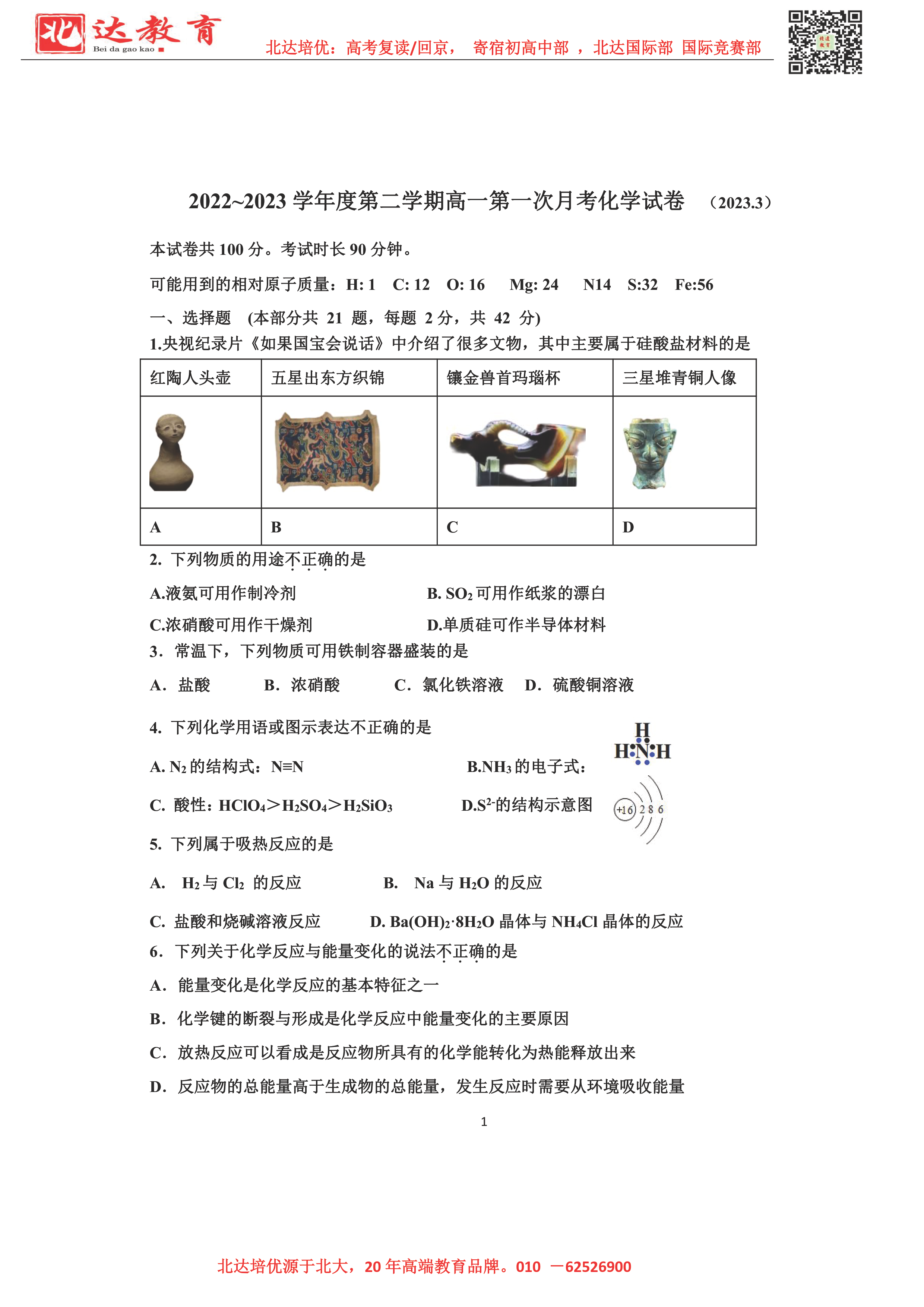 2023北京各区高一3月月考正进行中,admw360高考复读学校整理了2023北京一七一中高一3月月考化学试题.,同学们可以在线下载学习!