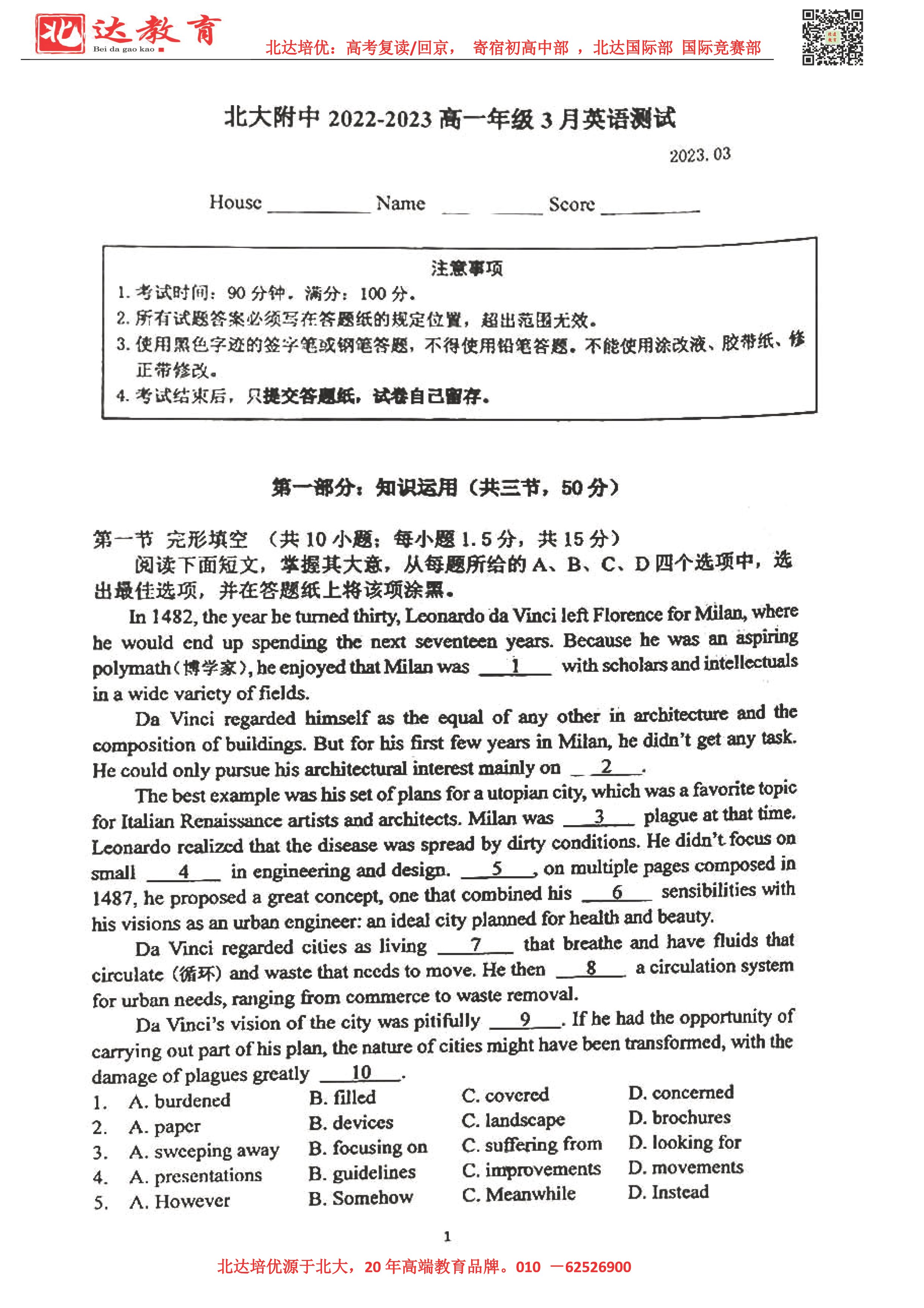 2023北京各区高一3月月考正进行中,admw360高考复读学校整理了2023北京八中高一3月月考化学试题,同学们可以在线下载学习!