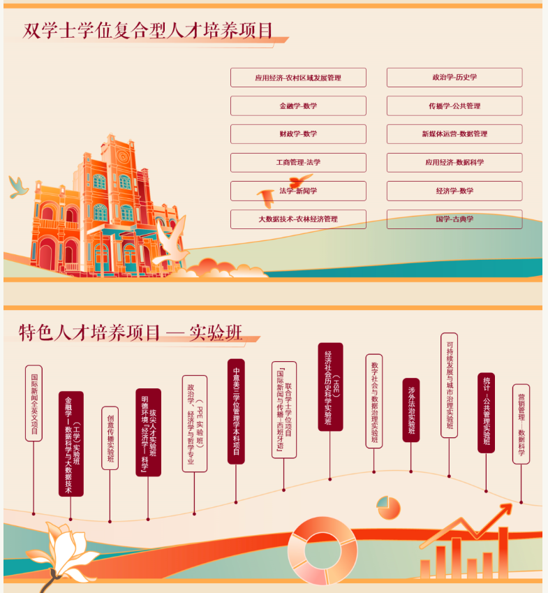 2、拔尖创新体系:截至目前,学校共有39个拔尖创新人才培养项目,覆盖全校26个院(系)。跨专业、跨学科、跨学校,真正实现复合型人才培养、个性化教学引导、精英化能力塑造,打破学科边界,展现多领域视角。