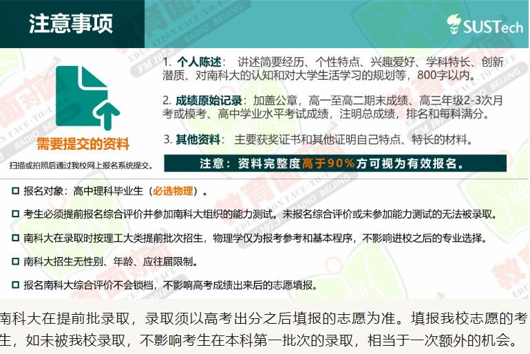 南方科技大学北京招生组组长做客高招直播节目,介绍南方科技大学2023年在北京招生政策、录取规则等,admw360高考复读学校整理了详细介绍,供查看。