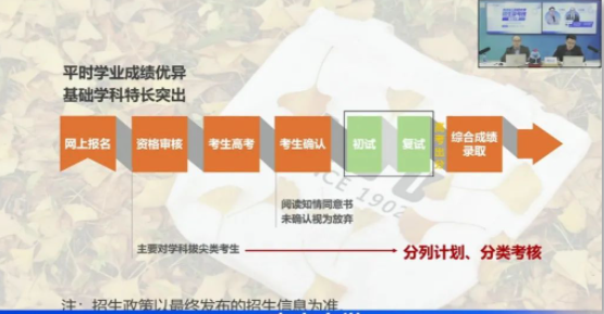 直播中还提到2023年南京大学特殊招生流程依然和去年一样,未发生太大的变化。但更加注重考生平时学业成绩优异、基础学科特长突出。