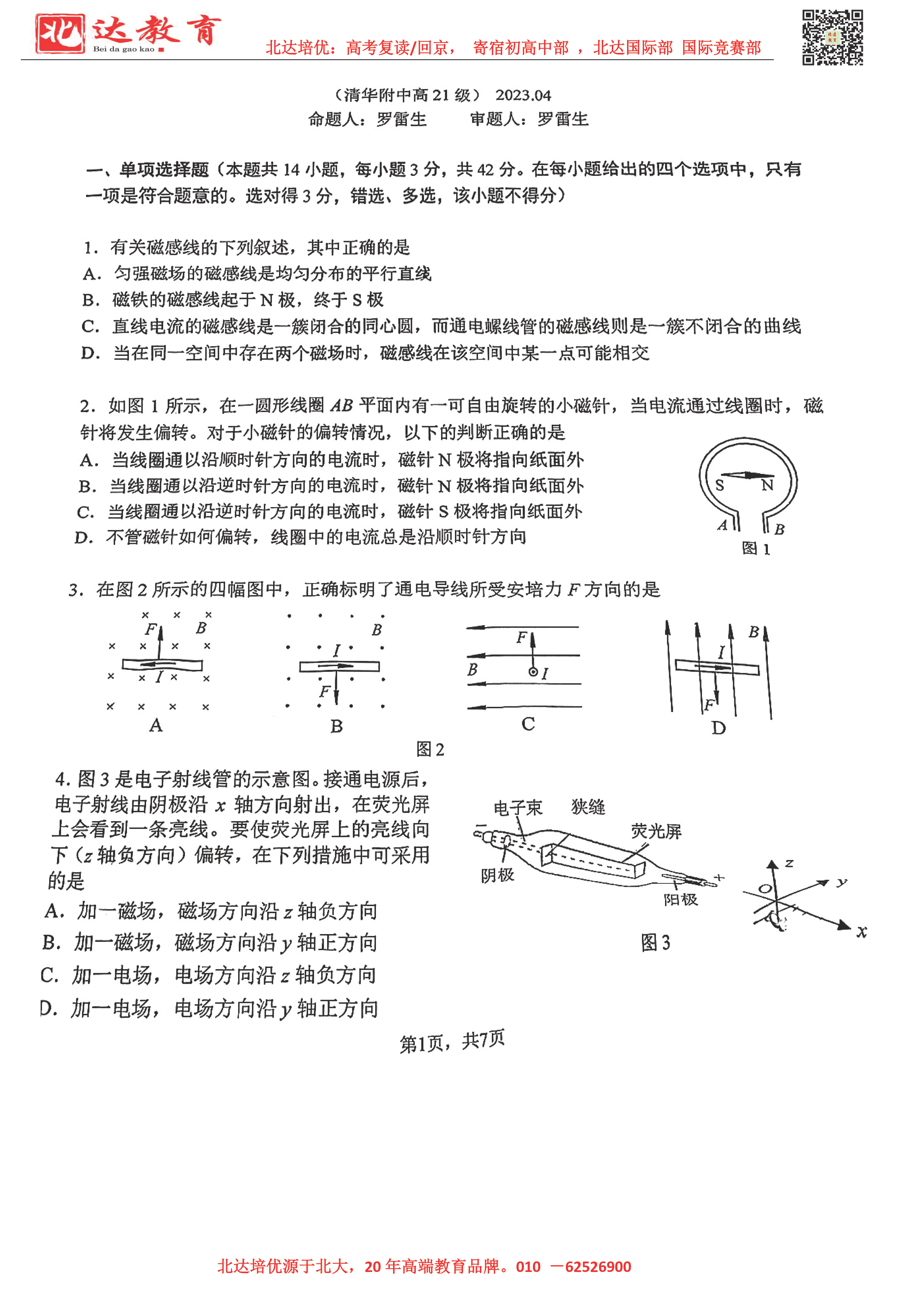 2022-2023学年北京各区高二年级下学期期中考试已开始,admw360高考复读学校整理了2022-2023学年北京清华附中高二(下)期中物理试题,供同学们在线下载!