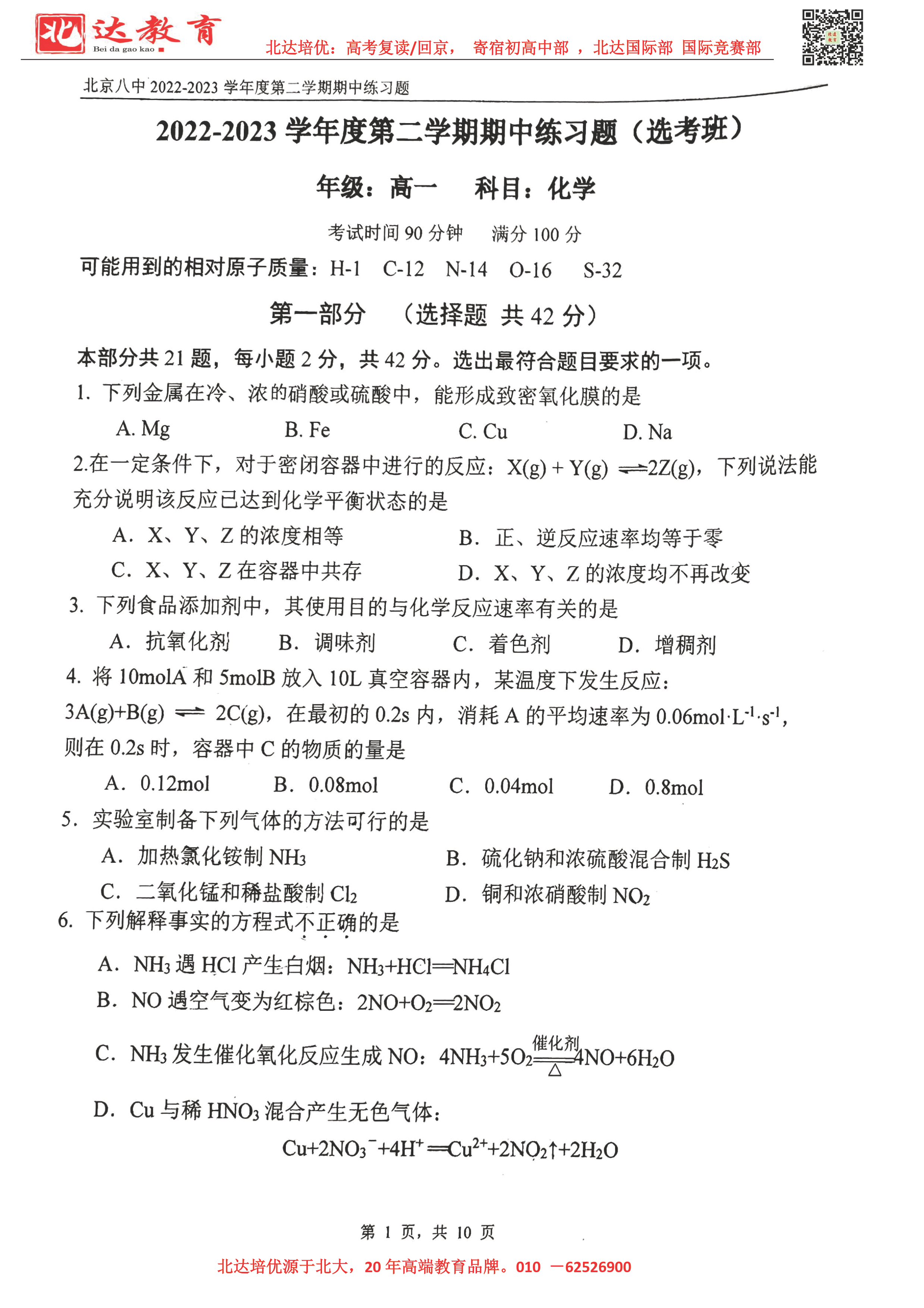 相关阅读:北京市各区2022-2023学年高一下学期期中试题及答案汇总