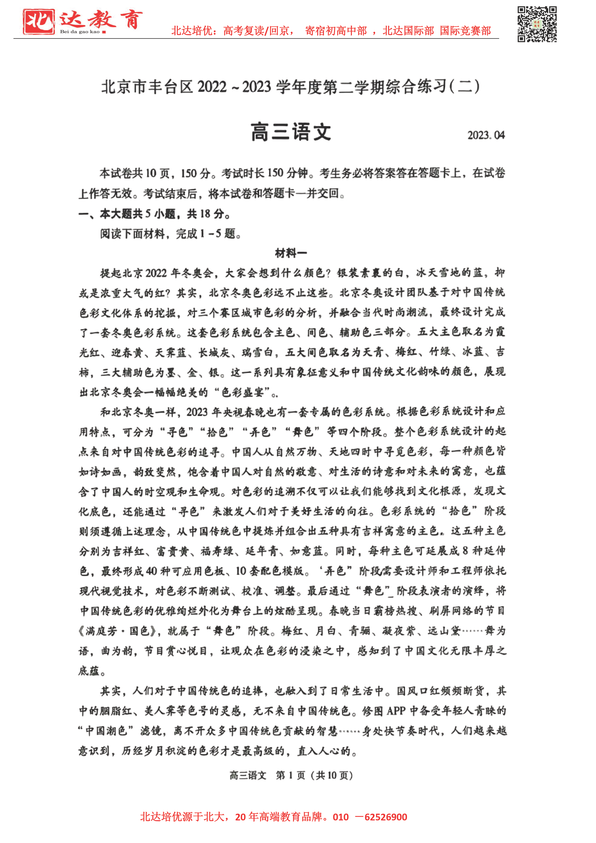 2023年北京丰台区高三二模考试预计于4月底进行。为了方便同学们查找相关试题及答案,admw360高考复读学校整理了2023年北京丰台区高三二模语文试题及答案,附高清电子版,欢迎为大家下载分享~