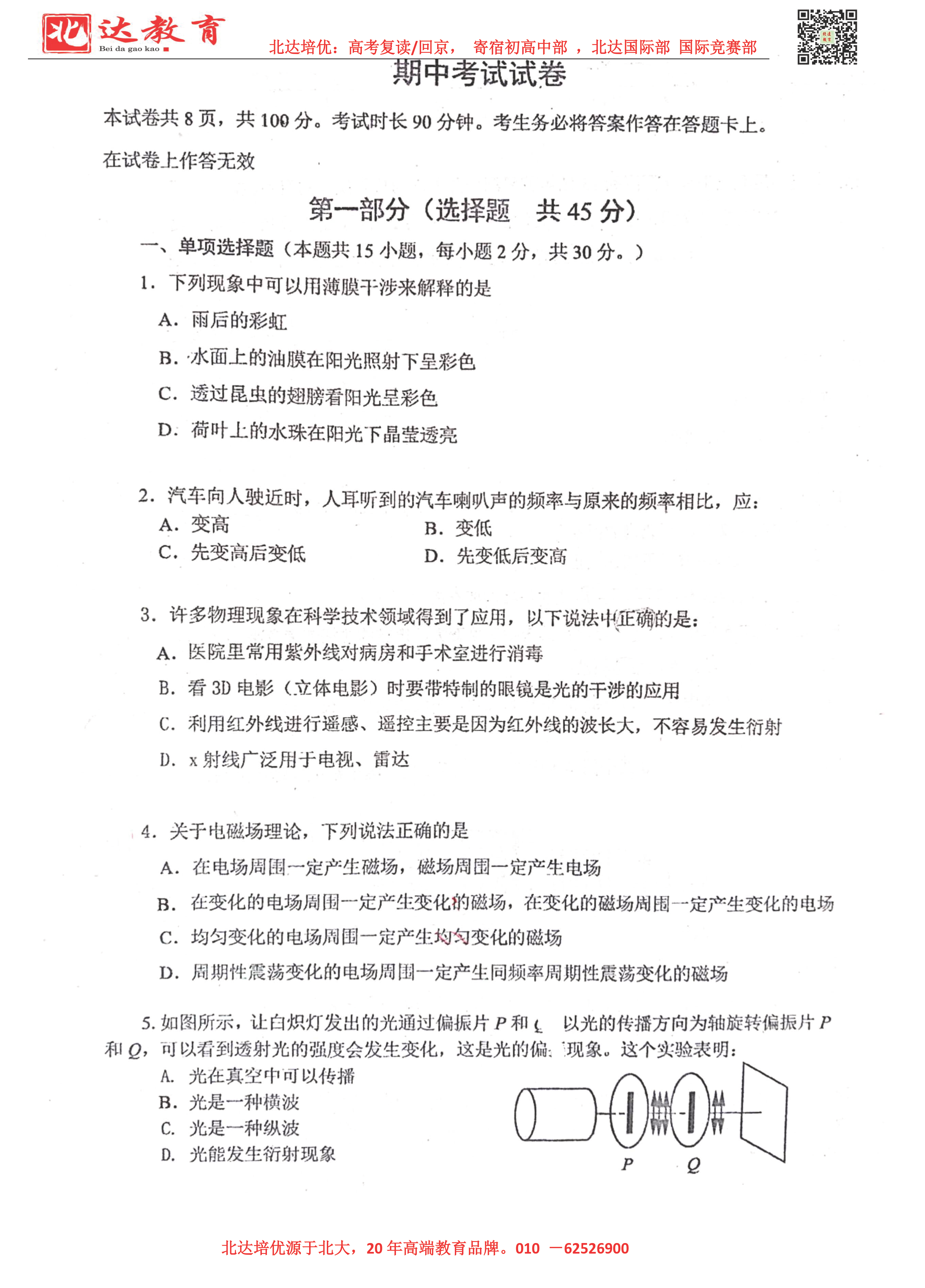 相关阅读:北京市各区2022-2023学年高二下学期期中试题及答案汇总