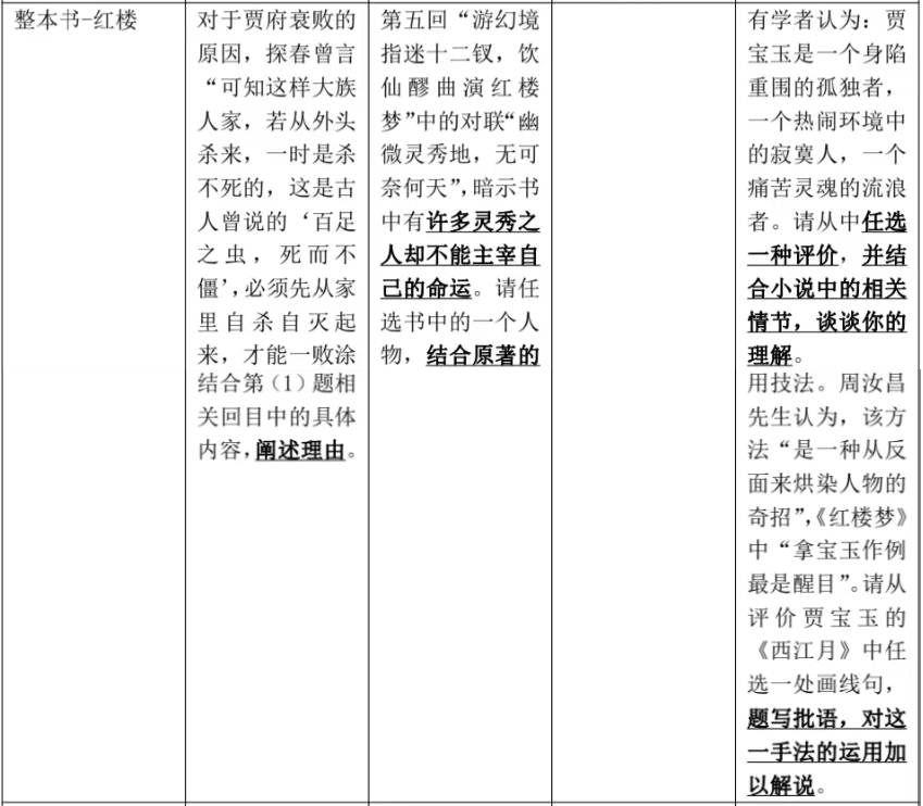 具体来说,试卷涉及鉴赏评价的主观题有:实用文本5(《红楼梦》中的声音描写)、诗鉴14(典故表达的情感)、整本书阅读16-1(人物评价)、16-2(背面敷粉法塑造人物)、文学文本19(语句表达效果)、文学文本20(赏析情节设计的匠心)。这些题目或聚焦特定的赏析对象,要求建立写法和效果的联系,如声音描写、某个情节的设计;或给定明确的赏析角度,要求鉴赏其艺术特色,如某个具体的诗歌典故、人物塑造的特定手法;或给定赏析的结论,需要挖掘能说明该特色的证据,如学者对贾宝玉三个方面的评价。不管题型如何变化,总归都是要训练学生搭建起对文学审美的理性认识,学会由浅入深条分缕析地解读文本,打通思维和审美两项核心素养的壁垒。