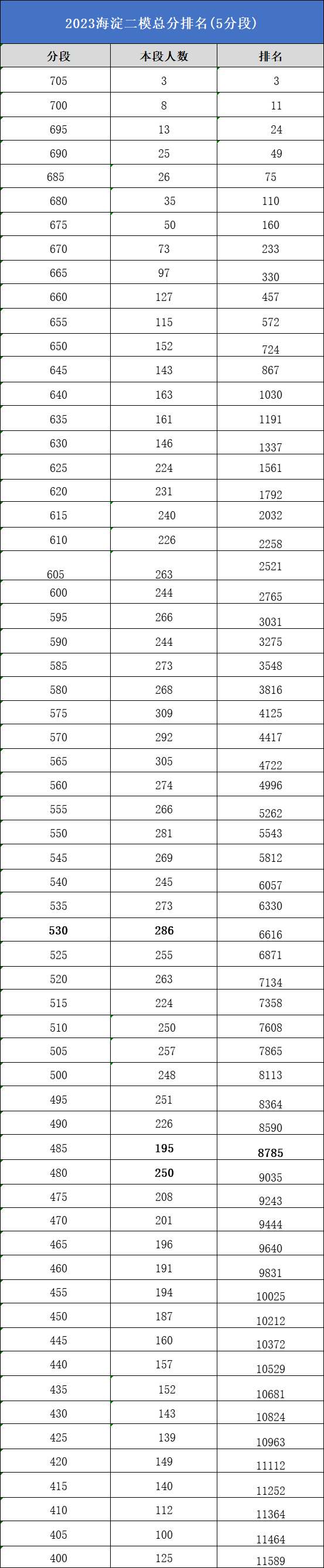 2023海淀高三二模成绩分数线已出炉,特招段480-490分,本科段380-390分。本文整理了相关成绩、分数线数据,详情如下: