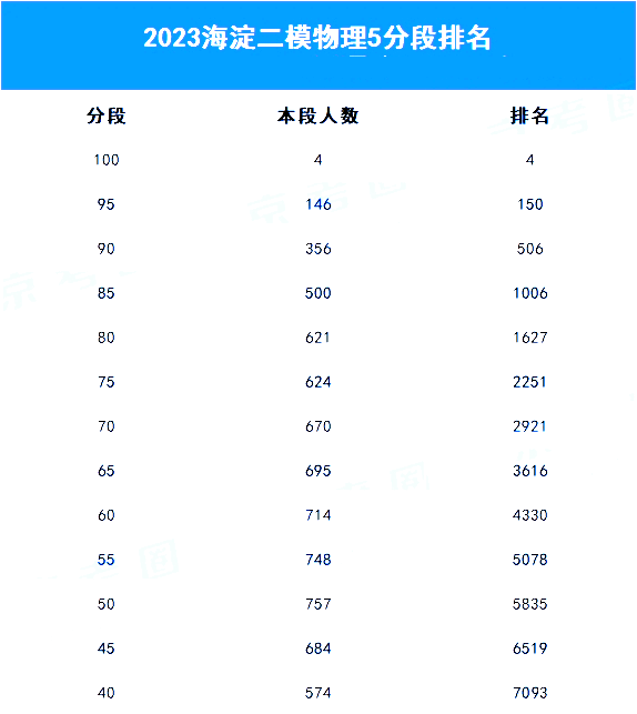 海淀高三二模物理排名五分段