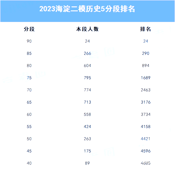 二模考试结束后,考生和家长最关注的就是成绩和排名。除海淀二模分数线、区排名及对应市排名外,本文收集到各科五分段排名表,快来看看!
