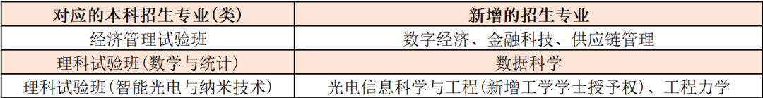2. 新增4个双学士学位招生项目入学时将面向对应大类学生选拔,学生毕业后获得双学位。