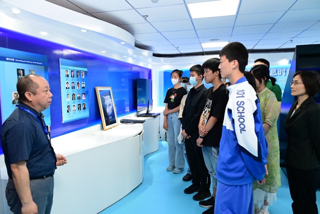 在网络与交换技术全国重点实验室,北京高二学生家长刘先生带着女儿认真听着计算机学院副院长、实验室副主任王尚广的介绍,“北邮是我们的意愿校,今天走进实验室,我们不仅了解到了我国6G技术发展的情况,也感受到了网信强国建设对新一代年轻人的使命召唤。”