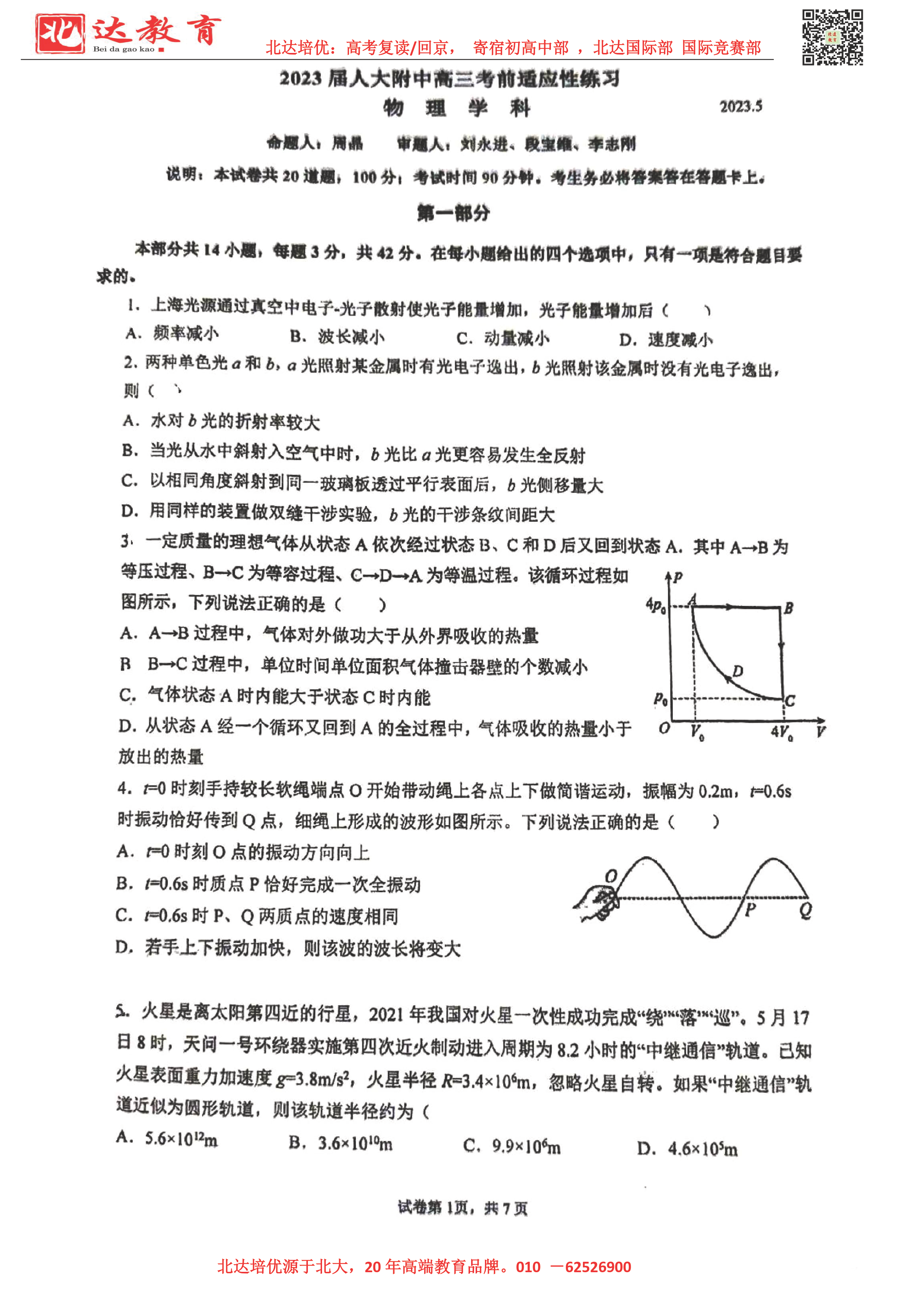 近日,北京人大附中高三年级进行了三模测试,为此,admw360高考复读学校整理了化学科目试题、答案相关内容,详情如下: admw360高中部:高复生,回京生,应届生,高一至高三寄宿招生简章 ★京籍高考…