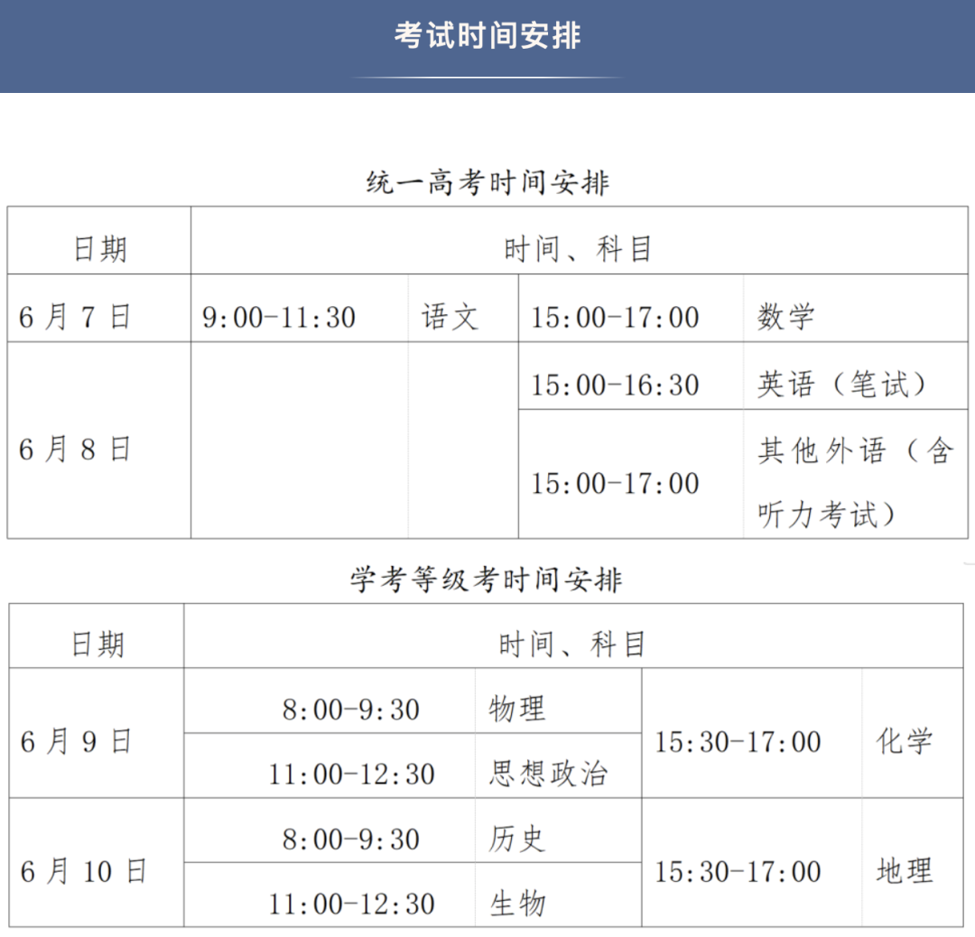 2023年普通高等学校招生全国统一考试及普通高中学业水平等级性考试将于6月7日至10日进行。今年本市参加6月高考的考生共计5.8万余人,全市设18个考区,100个考点、2029个考场。