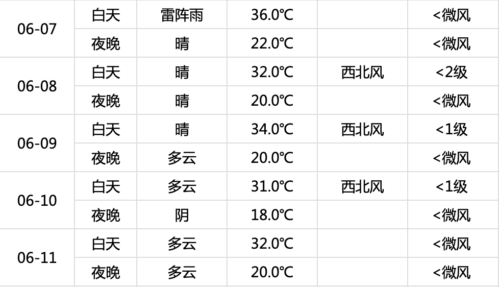 高考期间(6月7日至10日),北京市天气如上表所示。其中,6月7日白天有雷阵雨。降雨造成路面湿滑,能见度有所下降,对交通出行有不利影响,考生和家长要提前安排出行,并提前准备雨具,注意防雨防雷电。