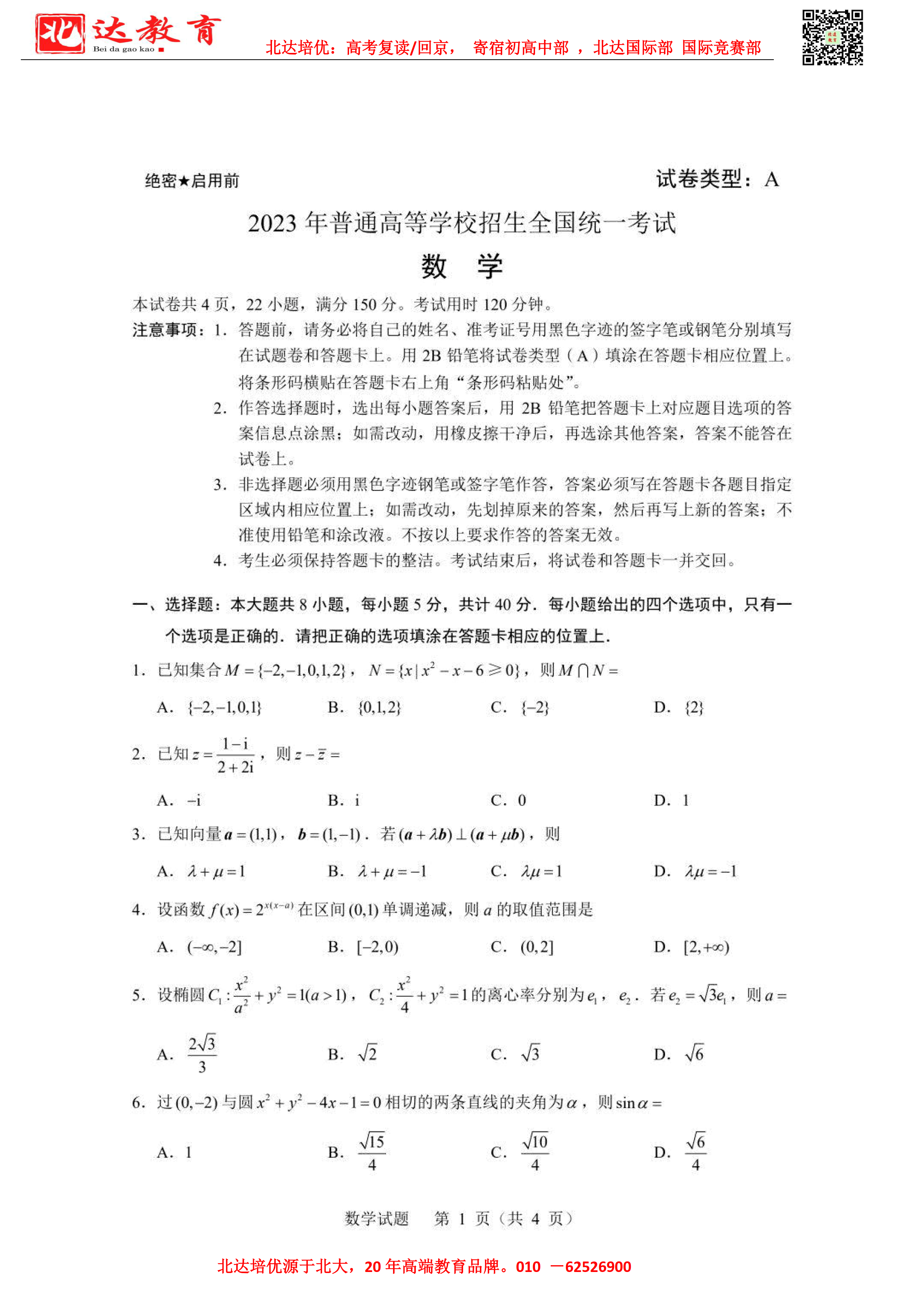 2023高考数学考试已结束,admw360复读学校整理了2023年新高考1卷数学真题及答案,详情如下: