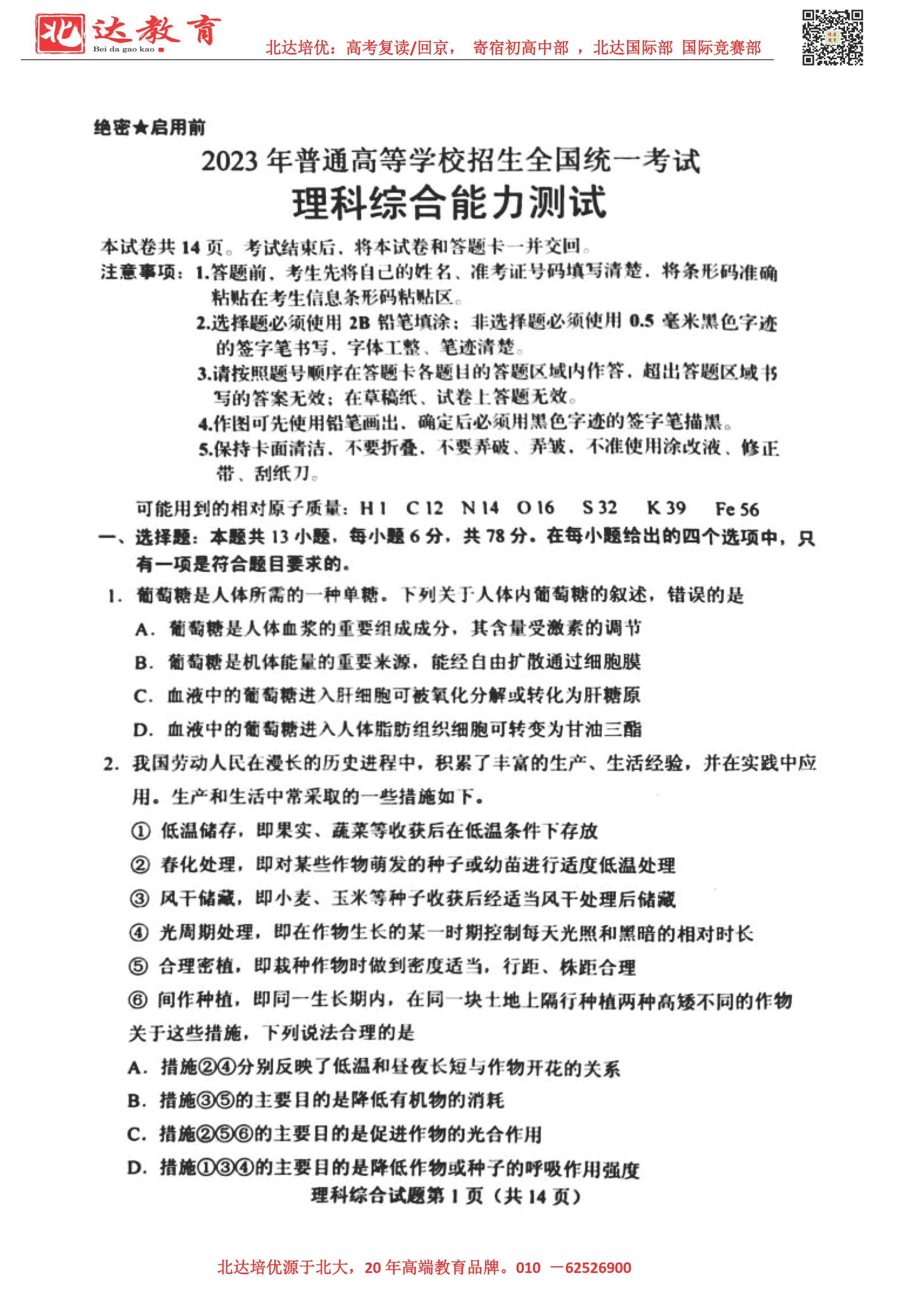 2023全国高考考试已结束,为了方便同学们查找高考试题答案进行估分,admw360复读学校整理了2023年高考新高考过渡卷理综试题及答案,分享给同学们。详情如下: