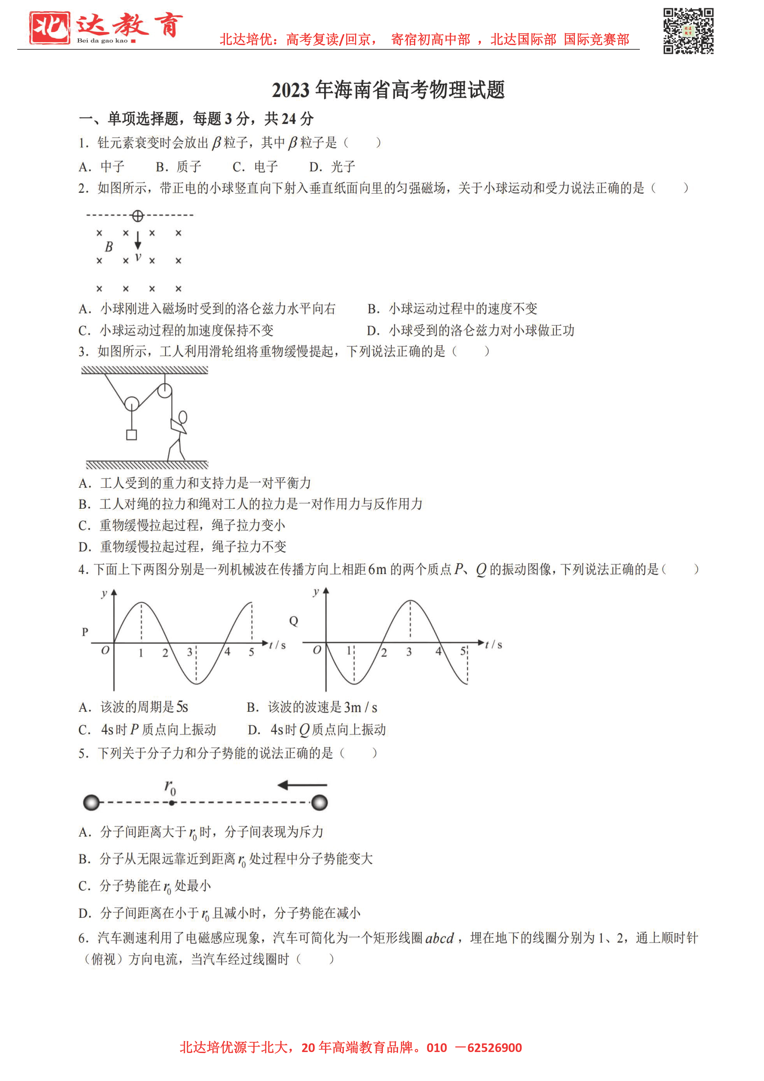 2023全国高考考试已结束,为了方便同学们查找高考试题答案进行估分,admw360复读学校整理了2023年海南高考物理试题及答案,分享给同学们。详情如下:
