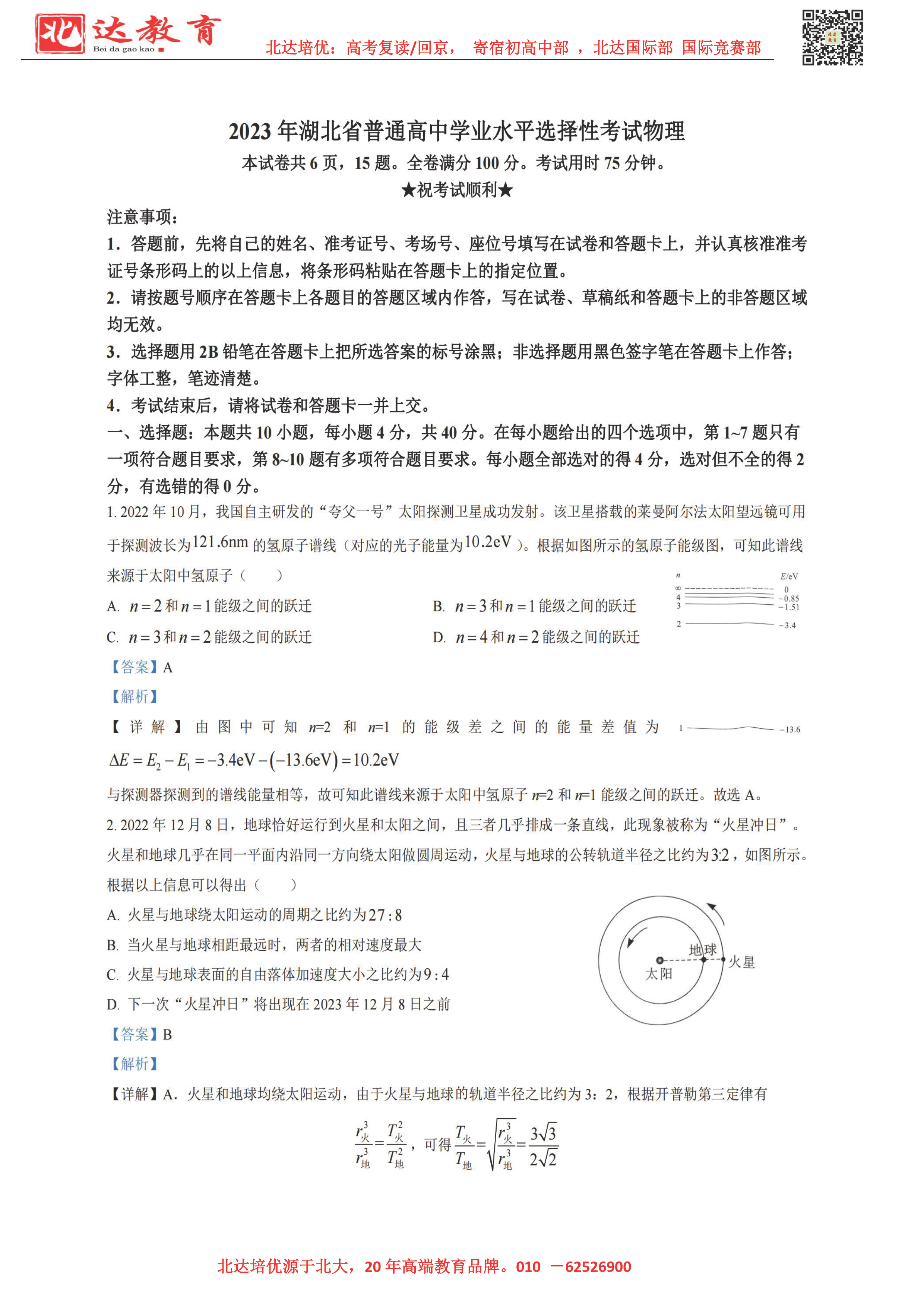 2023全国高考考试已结束,为了方便同学们查找高考试题答案进行估分,admw360复读学校整理了2023湖北高考物理试题及答案,分享给同学们。详情如下: