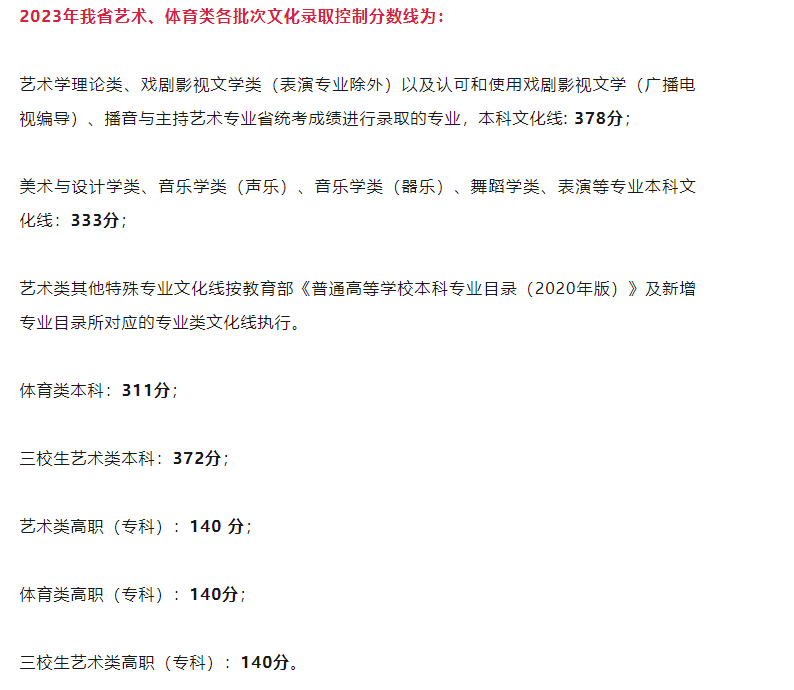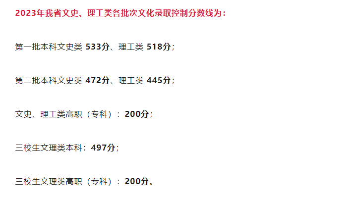 2023年江西普通高等学校招生录取最低控制分数线