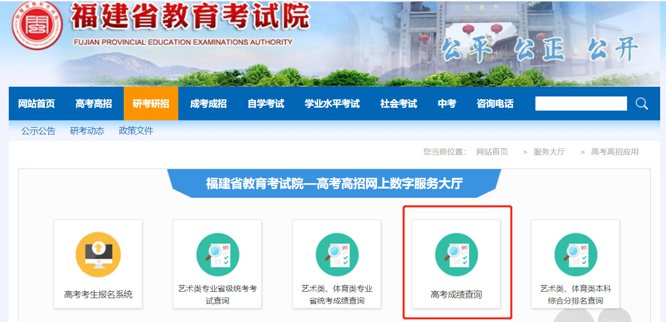 查询入口:数字服务大厅-福建省教育考试院 (复制链接至浏览器打开:https://www.eeafj.cn/sygkgzyy/)