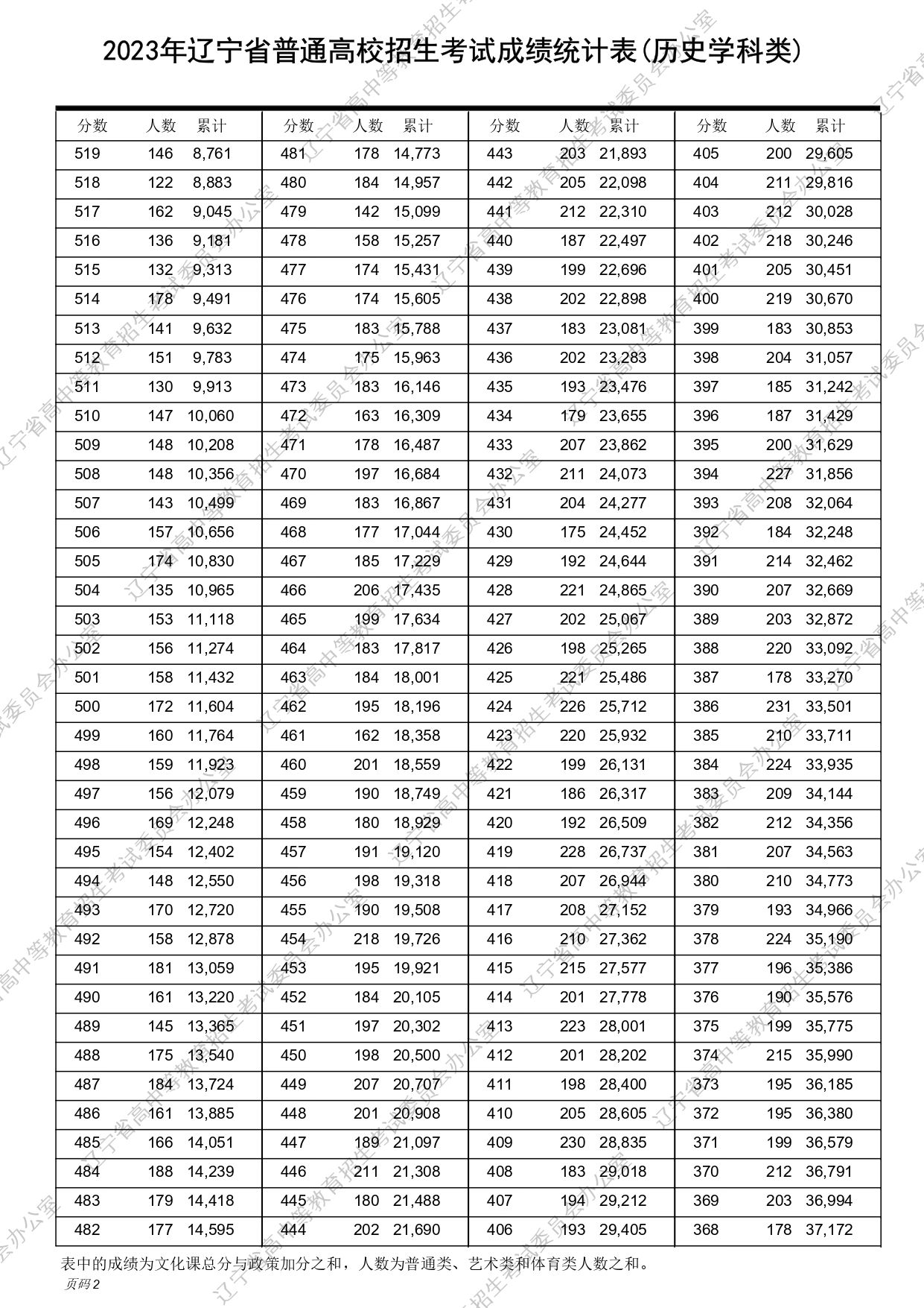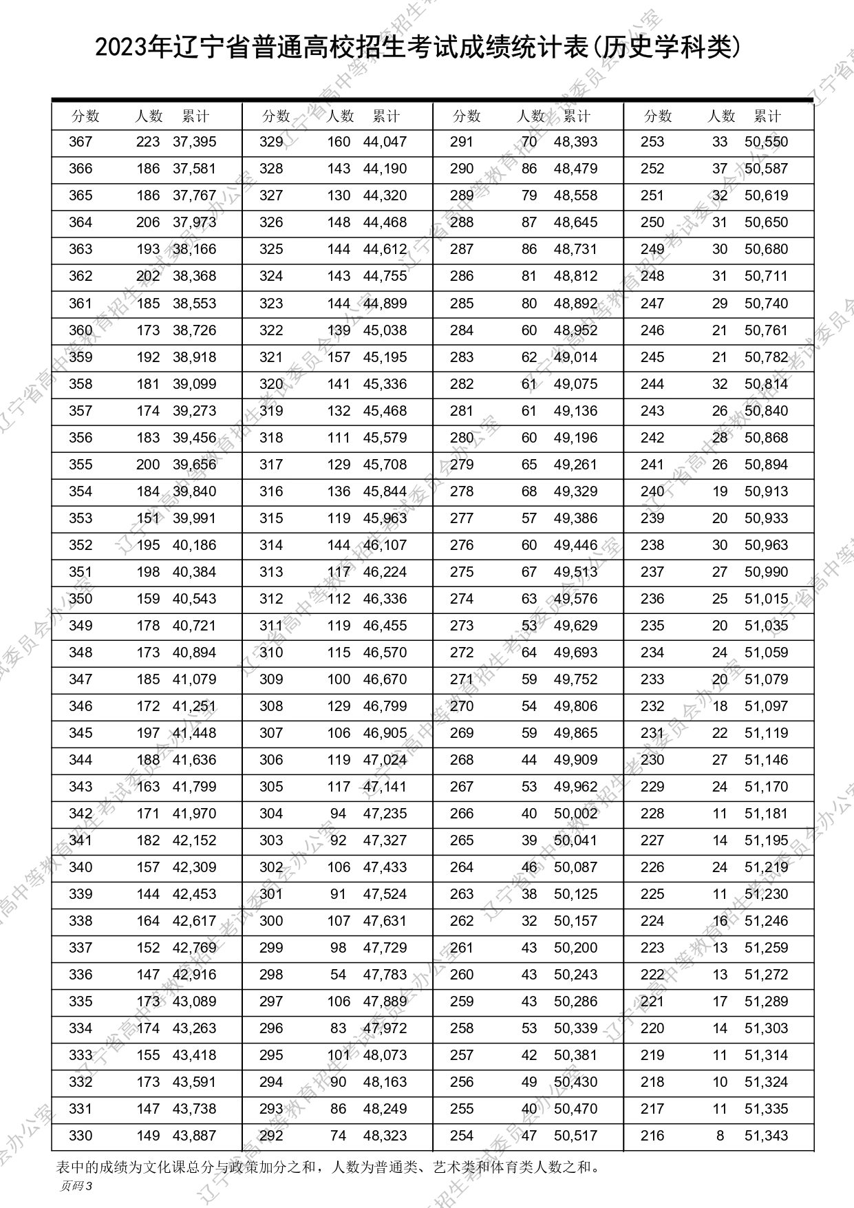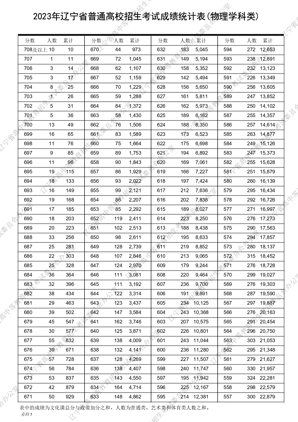 2023年辽宁高考物理、历史类成绩一分一段表