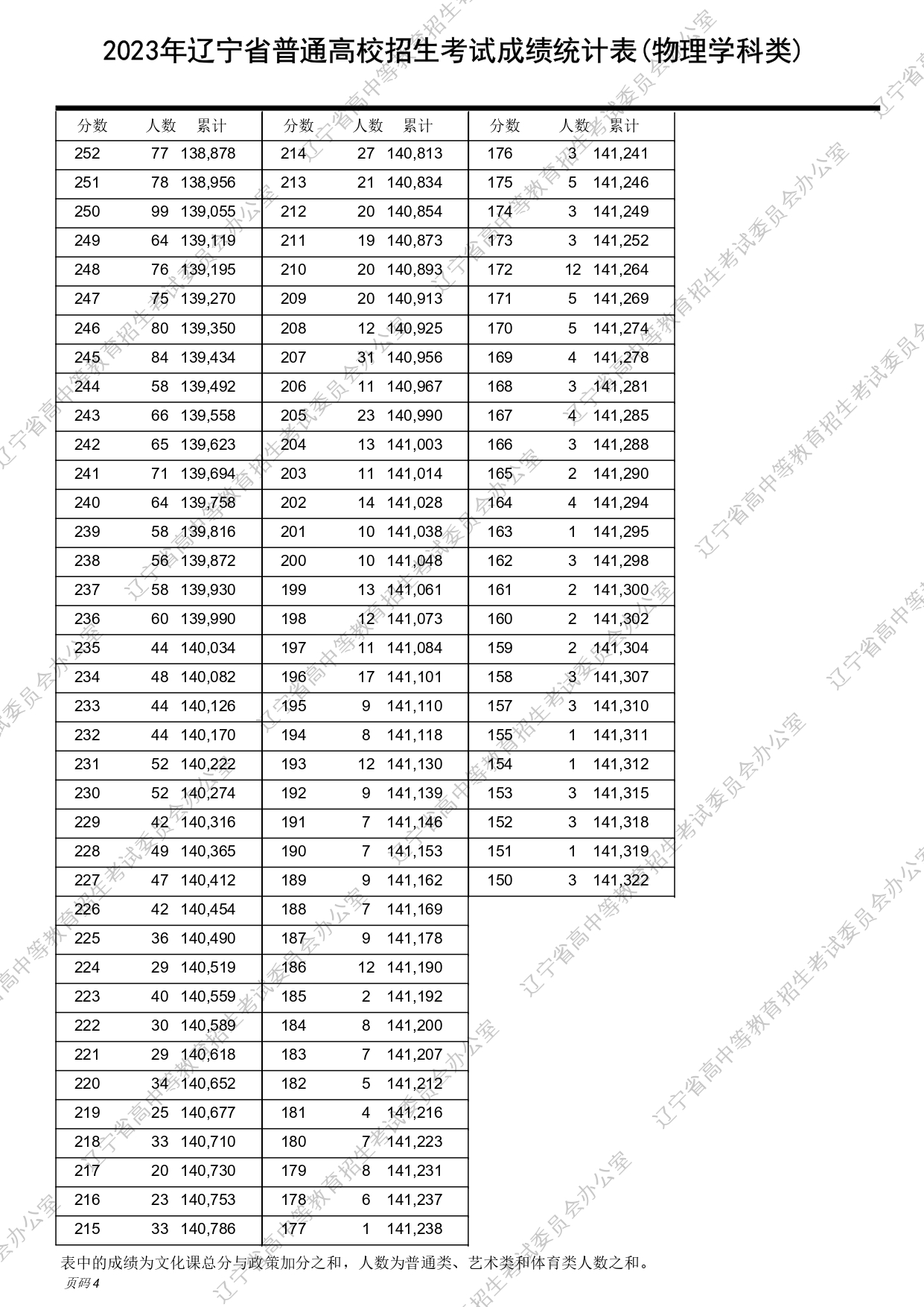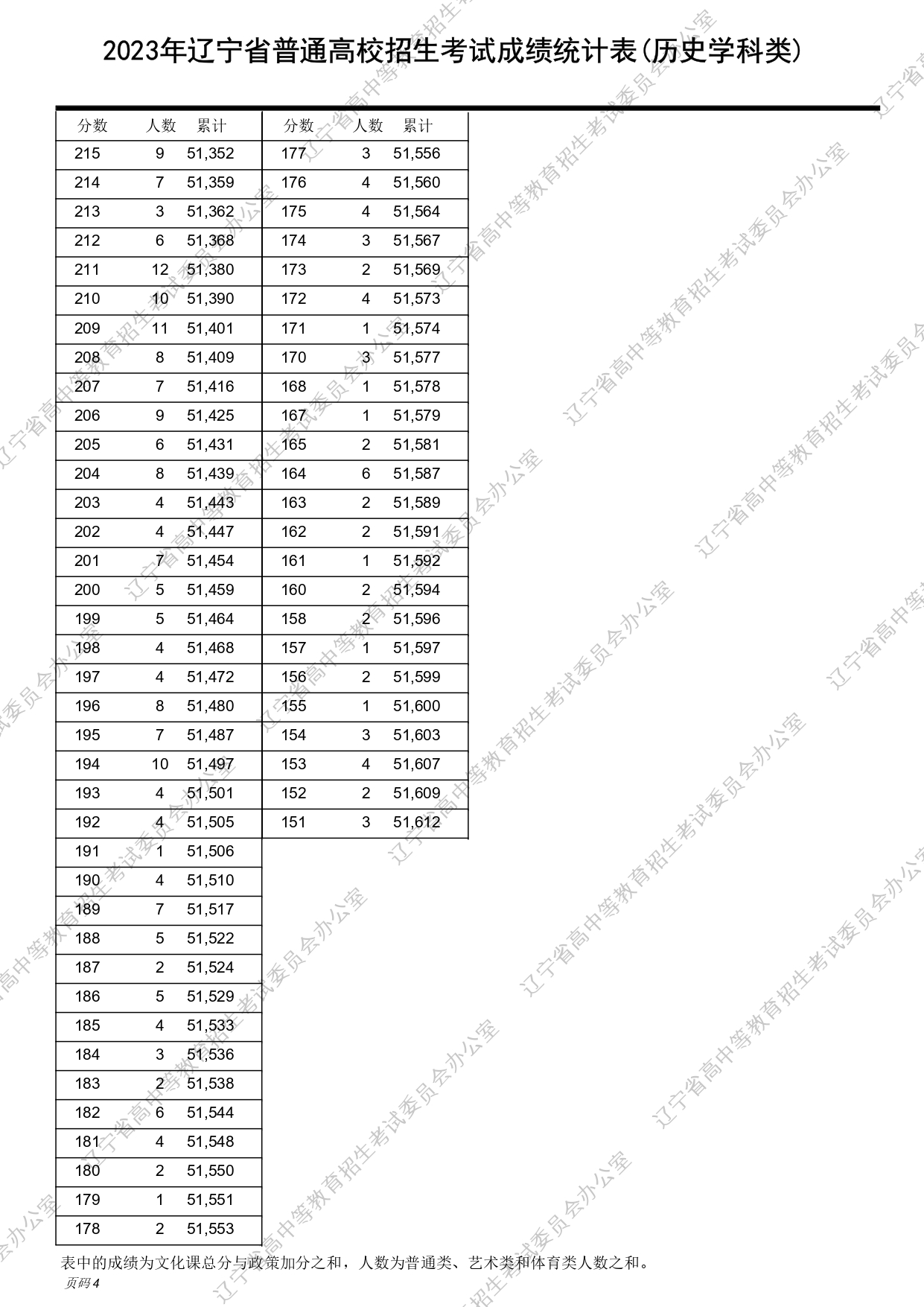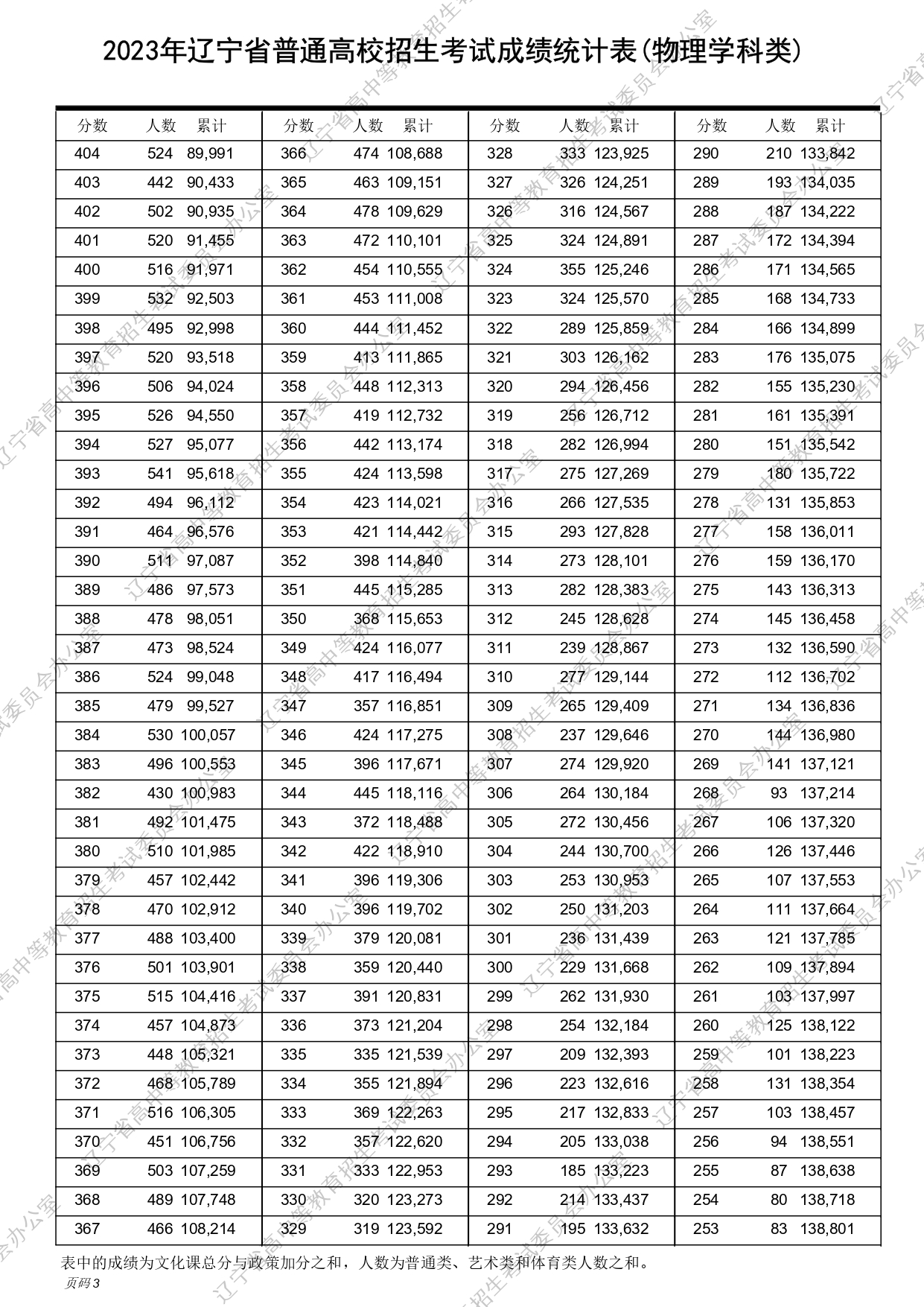 2023年辽宁高考物理、历史类成绩一分一段表