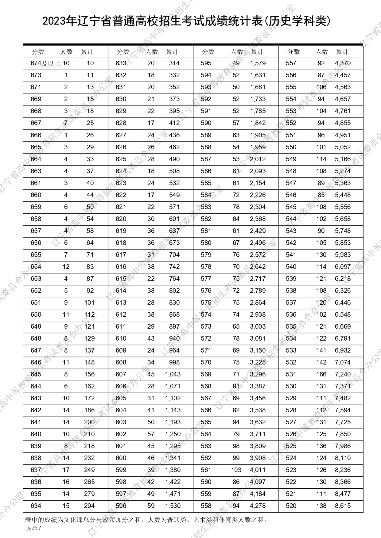 2023年辽宁高考历史组成绩一分一段表