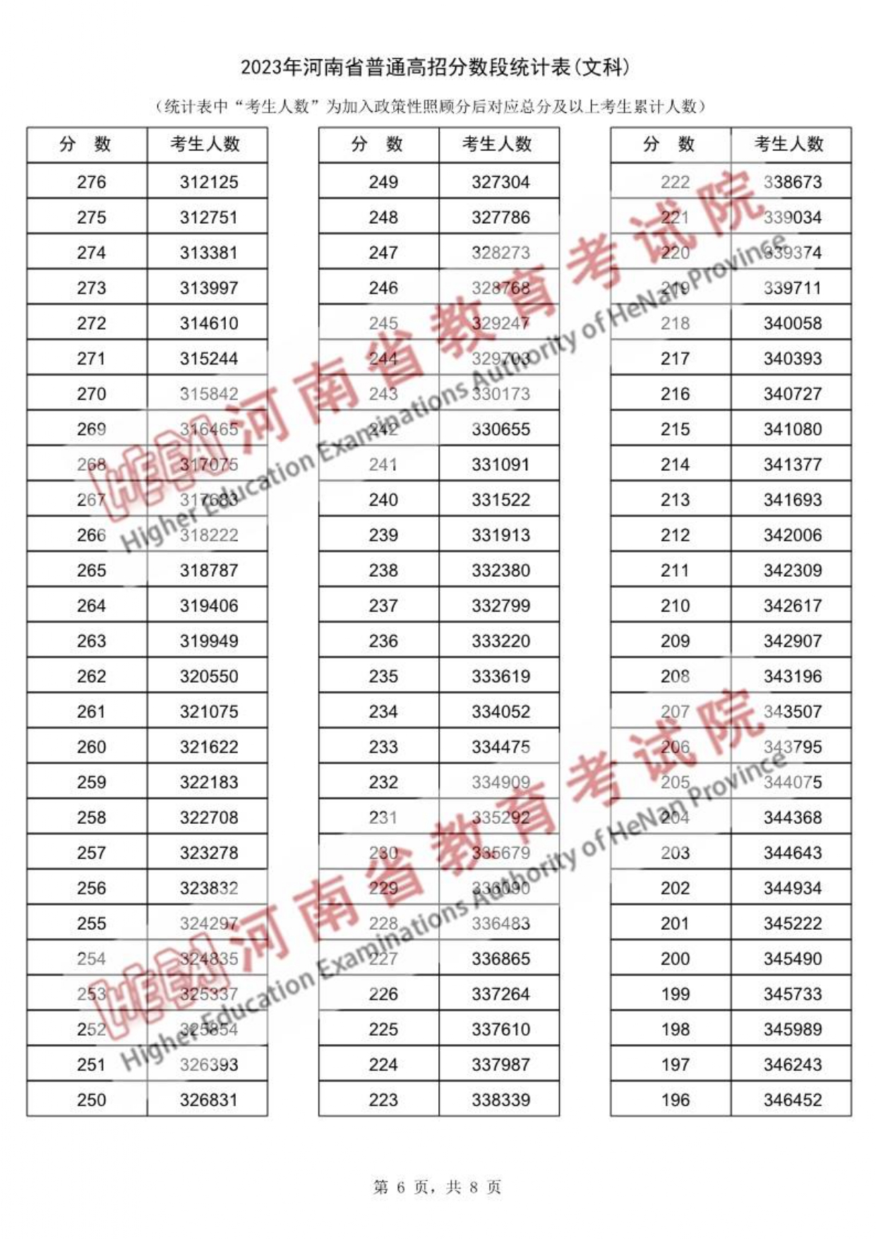 2023年河南省高考文科类一分一段表