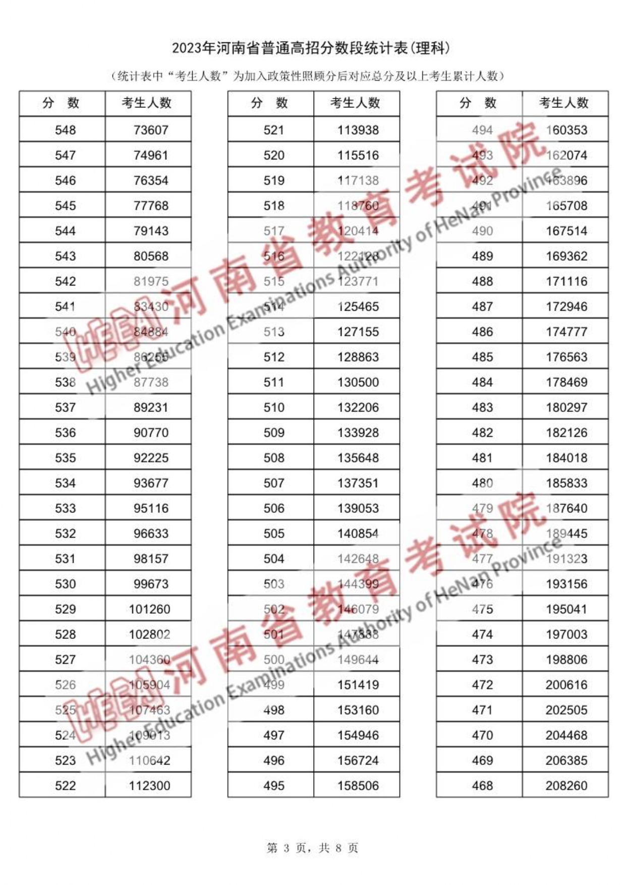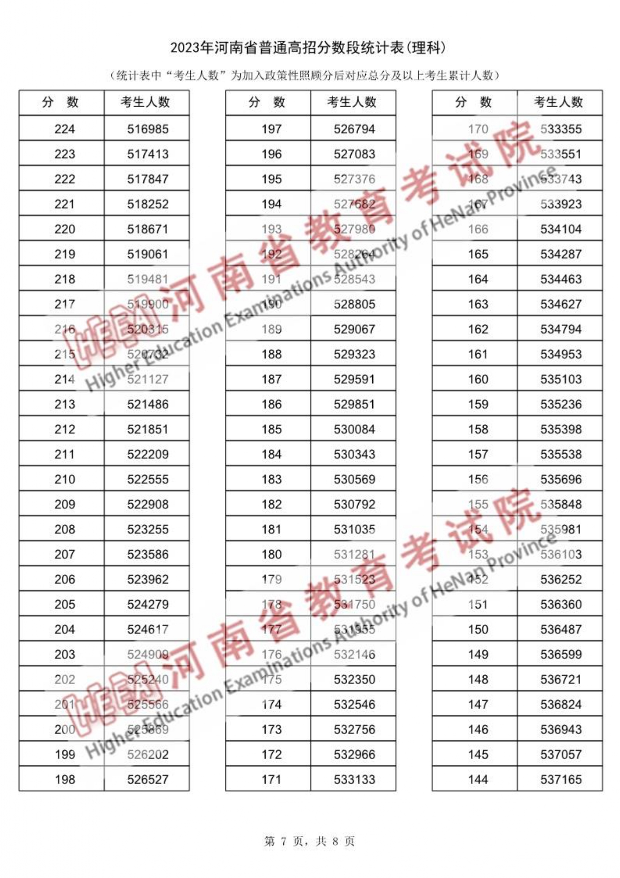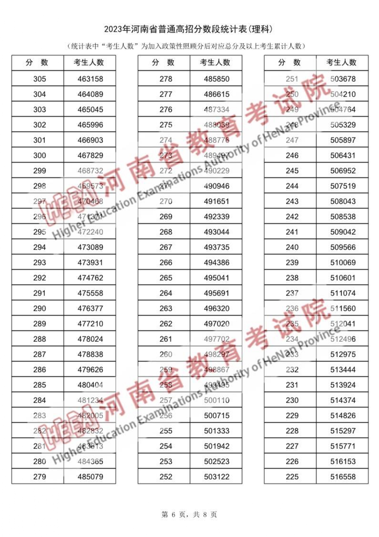 2023年河南省高考理科类一分一段表
