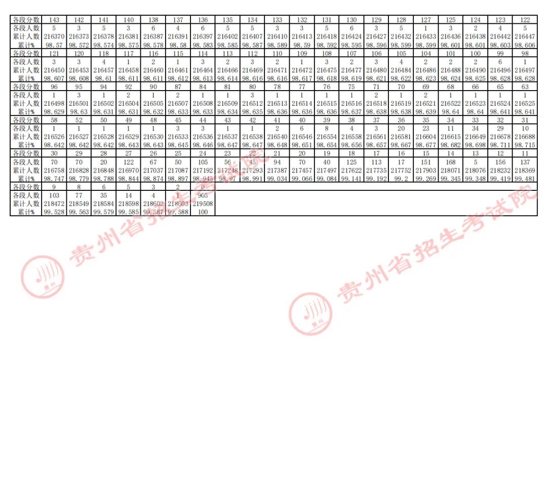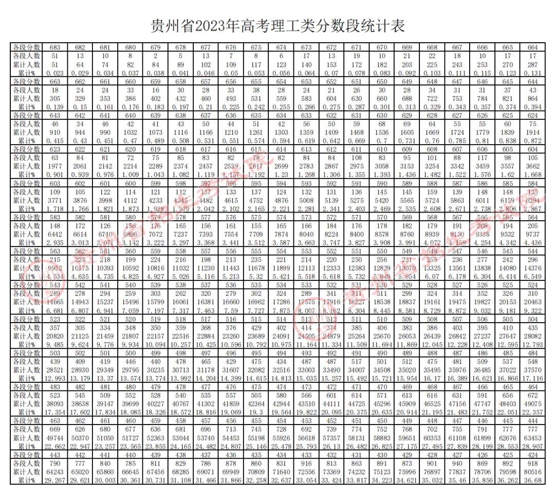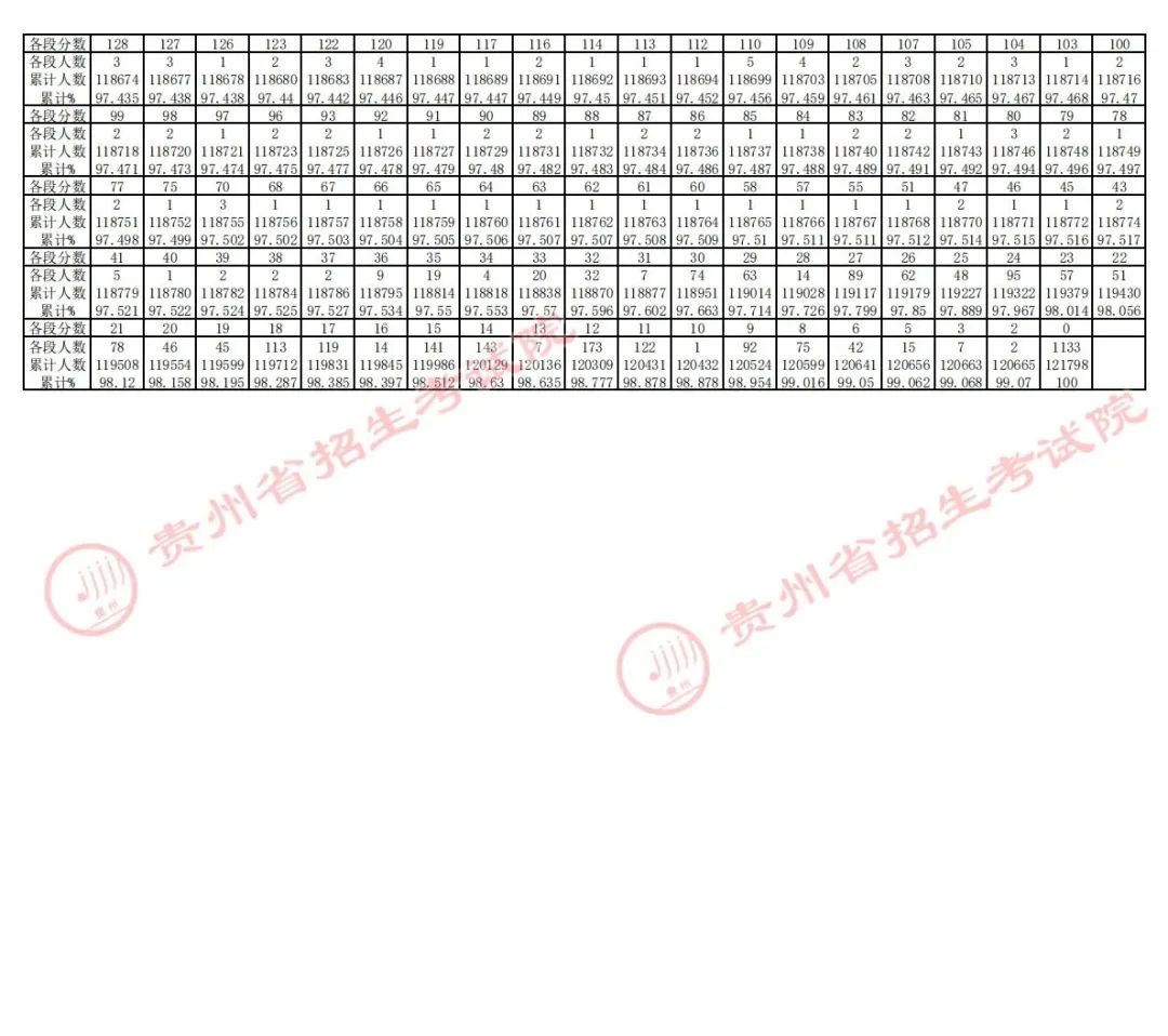 目前贵州2023高考最低控制录取分数线及高考成绩文理科一分一段表已公布,为了方便同学们查看高考成绩相关数据,admw360高考复读学校整理了文科成绩一分一段表相关内容,详情如下:
