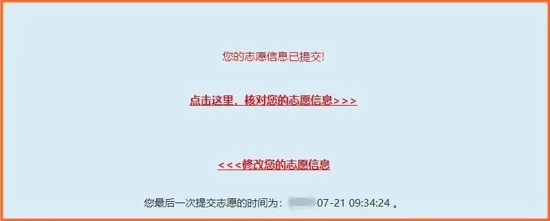 提醒:为了确保考生志愿信息安全,考生登录系统后如果长时间没有进行操作,系统将自动断开连接并在考生提交信息时提示超时,因此在登录系统后应尽快操作并提交信息。填报过程中,也可先将部分志愿先【提交】,再返回修改以便继续填报。