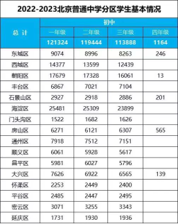 今年北京中考人数为10.5万人,当时在校人数为113888人,而现初二(新初三)在校人数达到了119444人,现初一(新初二)在校人数更是突破了12万。
