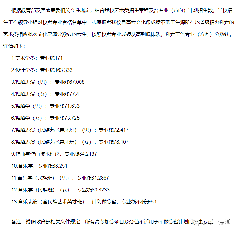 使用各省美术统考成绩或高考综合分录取的专业根据各省级招办政策和安排进行投档和录取,截止发布前,有如下省份和专业确定最低录取分数线(计算公式见我校相关《招生简章》或各省级招办公布之政策):