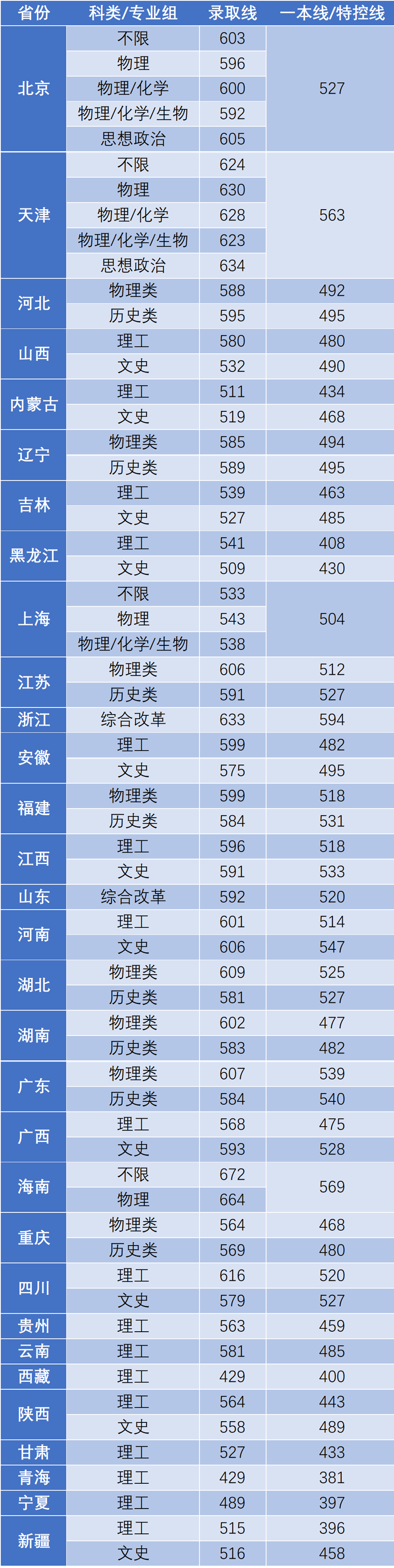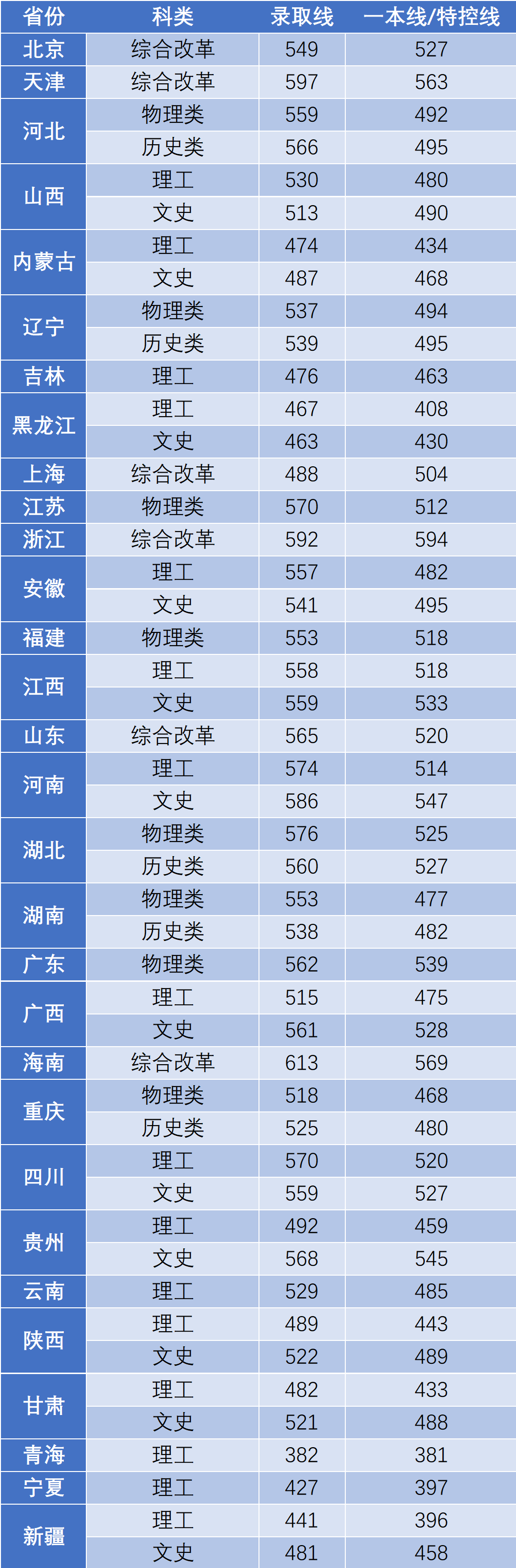 注:录取线统计不包括特殊类型及征集志愿考生。