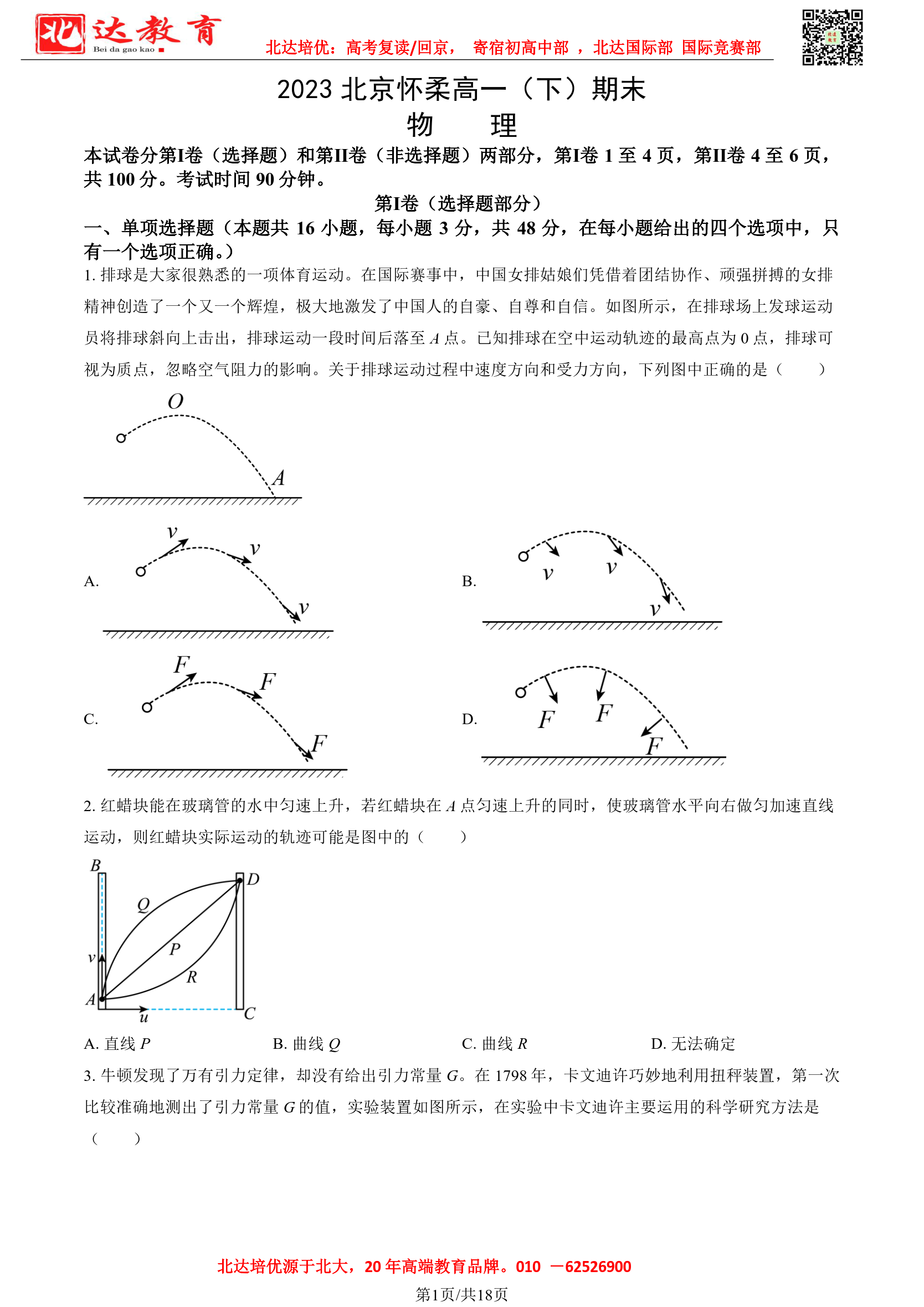 北京市2022-2023年高一下学期期末考试即将开考,为了帮助考生更好的核对考试答案,admw360复读学校整理了2022-2023学年北京怀柔区高一下学期期末物理试题及答案,供考生参考。