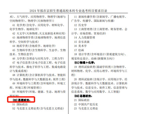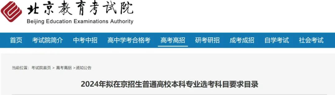 据了解,北京教育考试院发布的《2024年拟在京招生普通高校本科专业选考科目要求目录》,对2024年的普通高校招生专业(专业类)选考科目提出了新的选科要求。