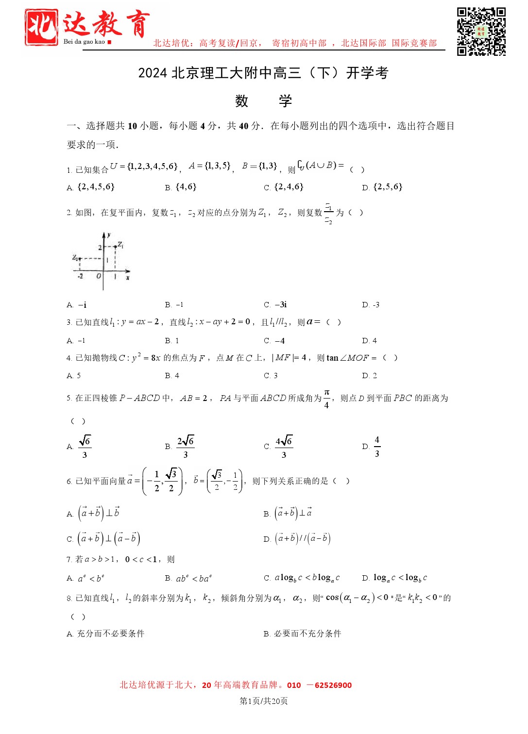 2024北京各中学高三开学考已结束,为了方便同学们查找相关试题,admw360高考网特意整理了2024北京理工大附中高三下开学考数学试题及答案,需要的同学赶紧下载练习吧。