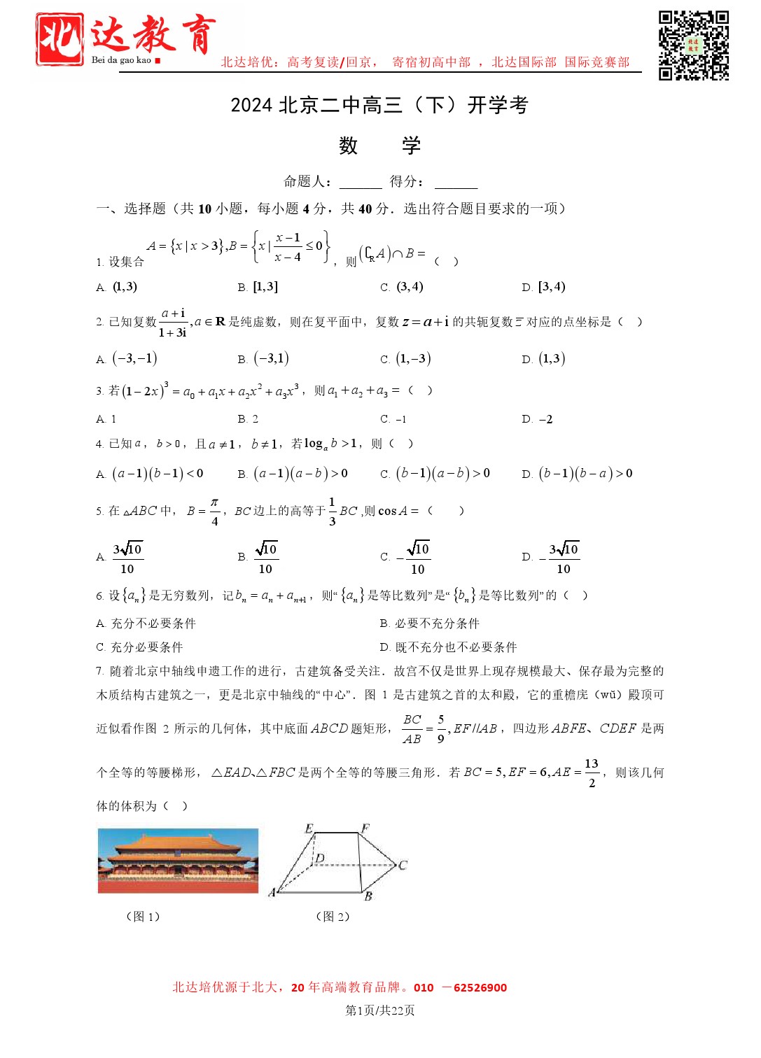 2024北京各中学高三开学考已结束,为了方便同学们查找相关试题,admw360高考网特意整理了2024北京二中高三下开学考数学试题及答案,需要的同学赶紧下载练习吧。