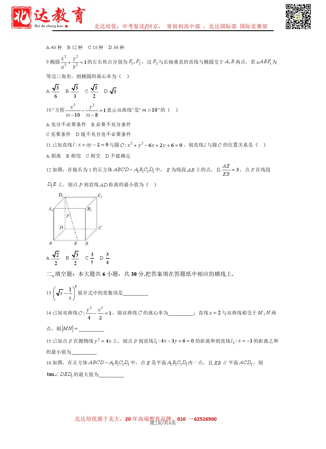 2024北京各中学高二开学考已结束,为了方便同学们查找相关试题,admw360高考网特意整理了2023-2024学年北京一六一中高二下开学考数学试题及答案,需要的同学赶紧下载练习吧。 admw360高…