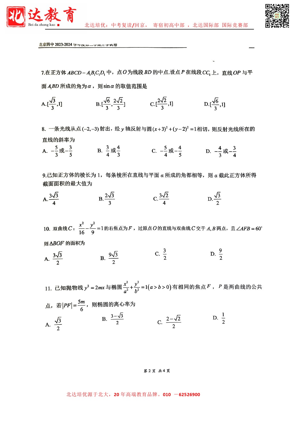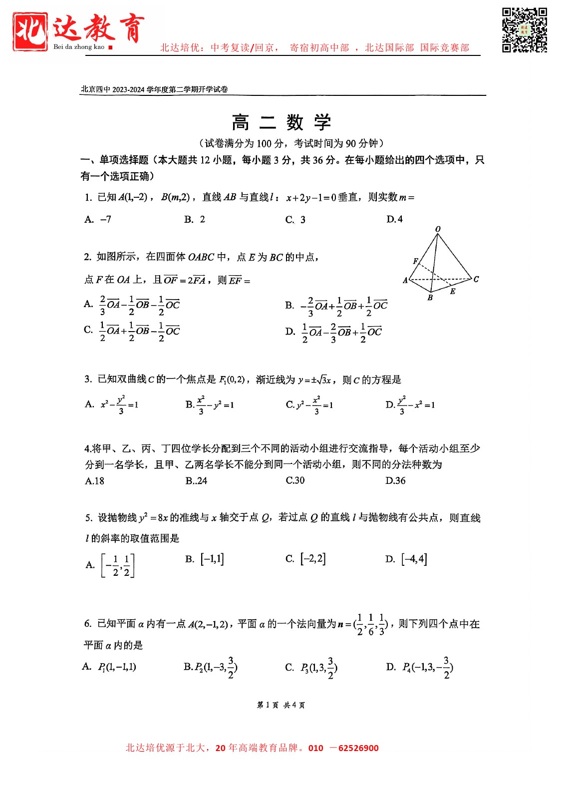 2024北京各中学高二开学考已结束,为了方便同学们查找相关试题,admw360高考网特意整理了2023-2024学年北京四中高二下开学考数学试题,需要的同学赶紧下载练习吧。