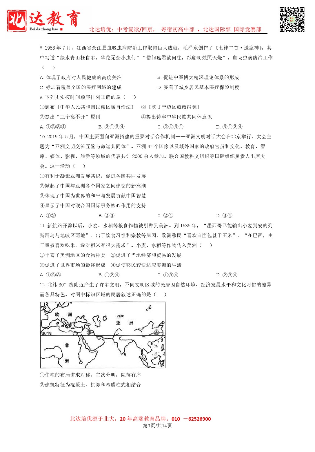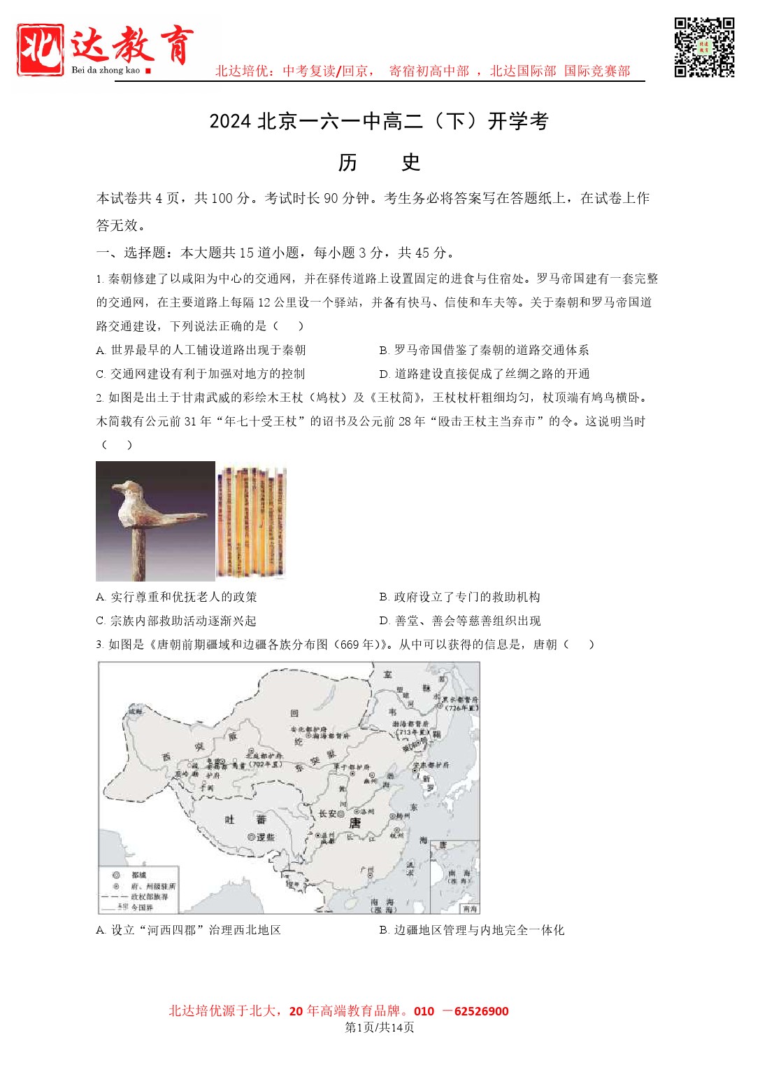 2024北京各中学高二开学考已结束,为了方便同学们查找相关试题,admw360高考网特意整理了2023-2024学年北京一六一中高二下开学考历史试题及答案,需要的同学赶紧下载练习吧。