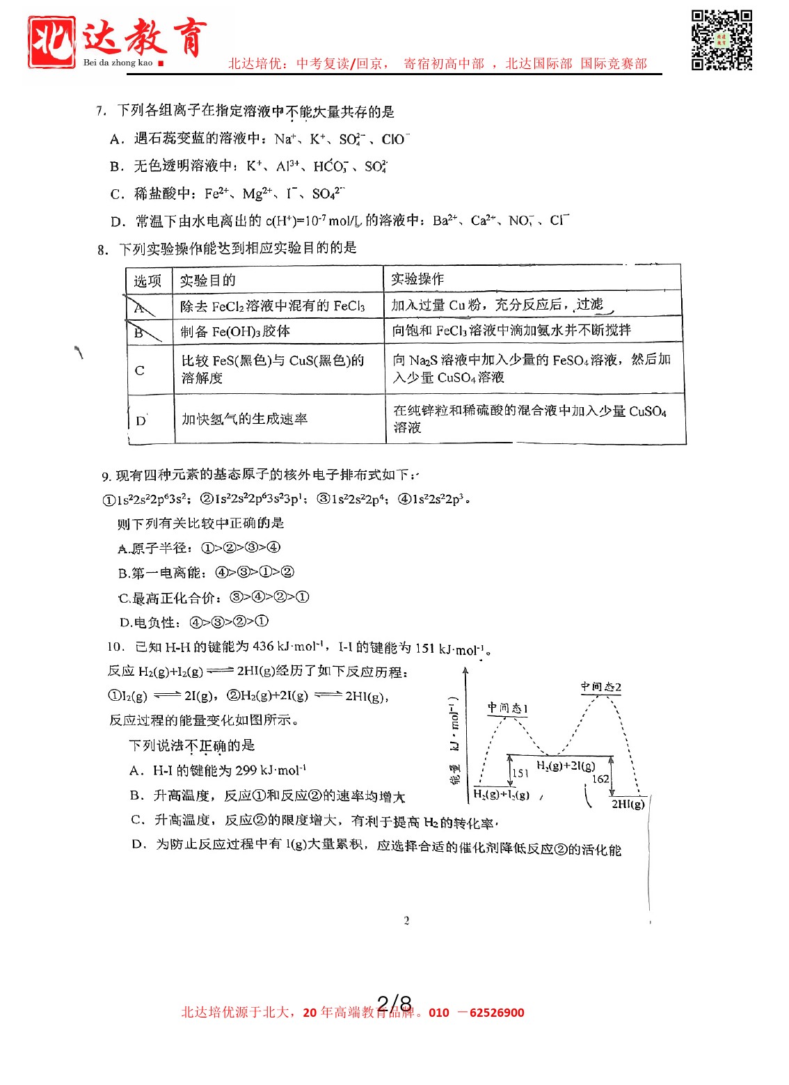 2024北京各中学高二开学考已结束,为了方便同学们查找相关试题,admw360高考网特意整理了2023-2024学年北京十二中高二下开学考化学试题及答案,需要的同学赶紧下载练习吧。