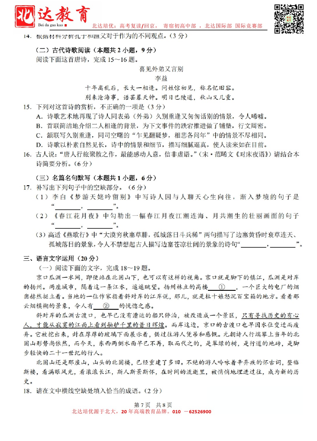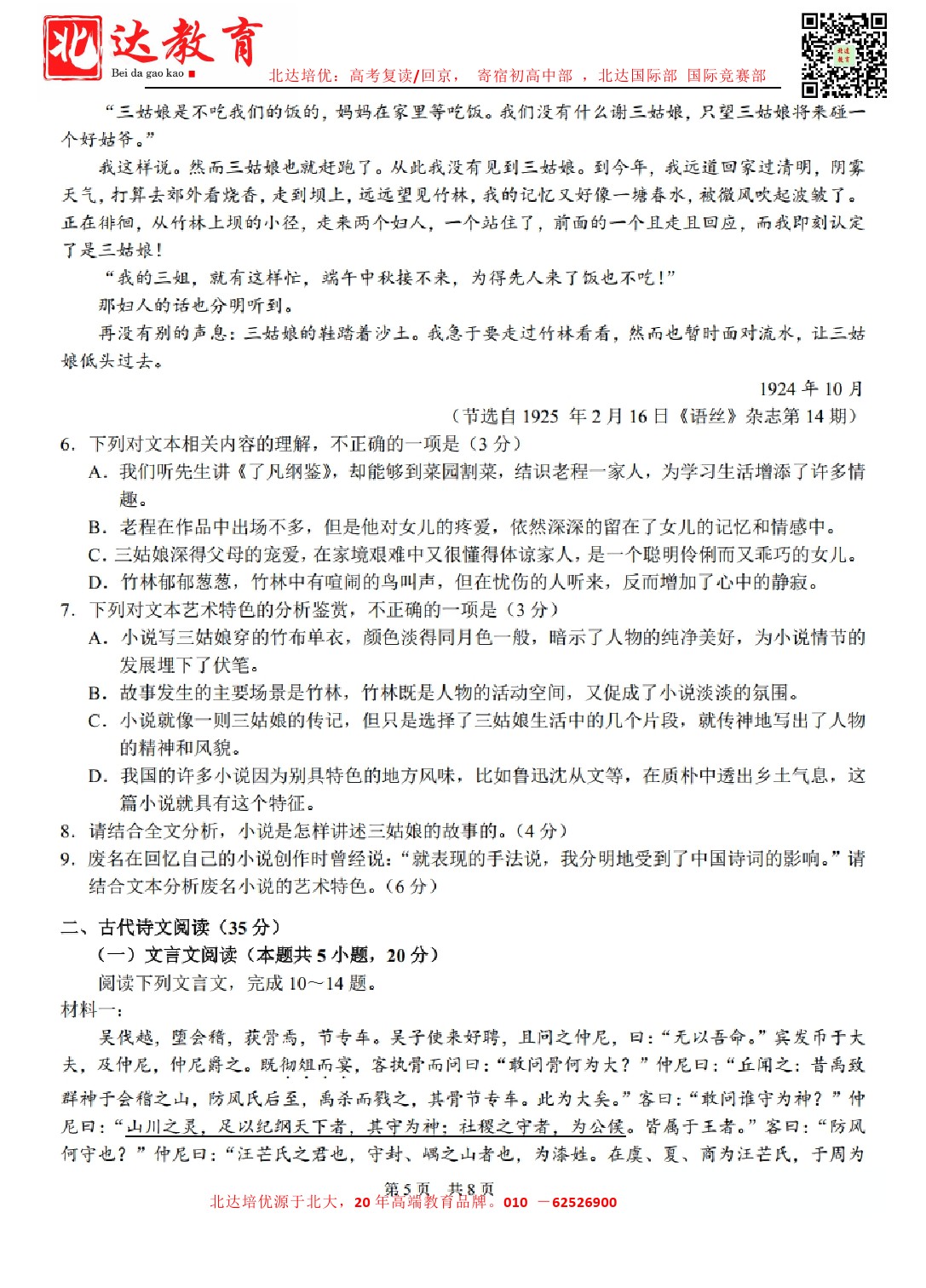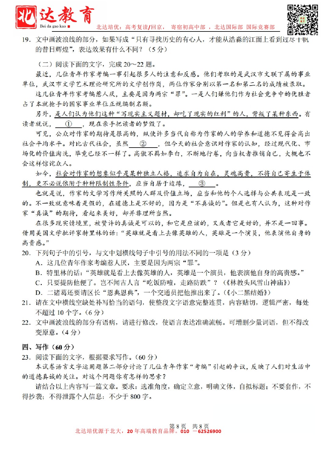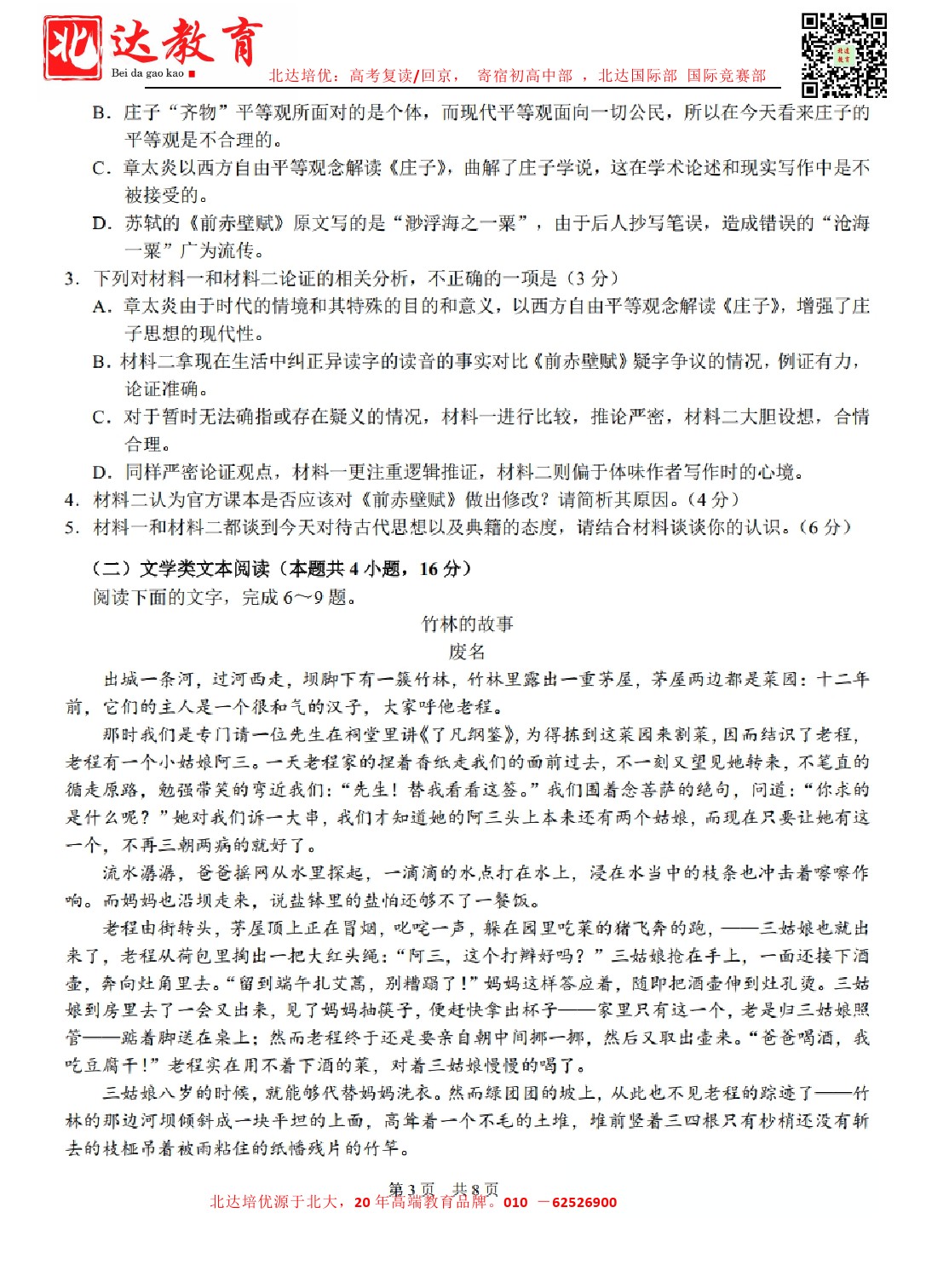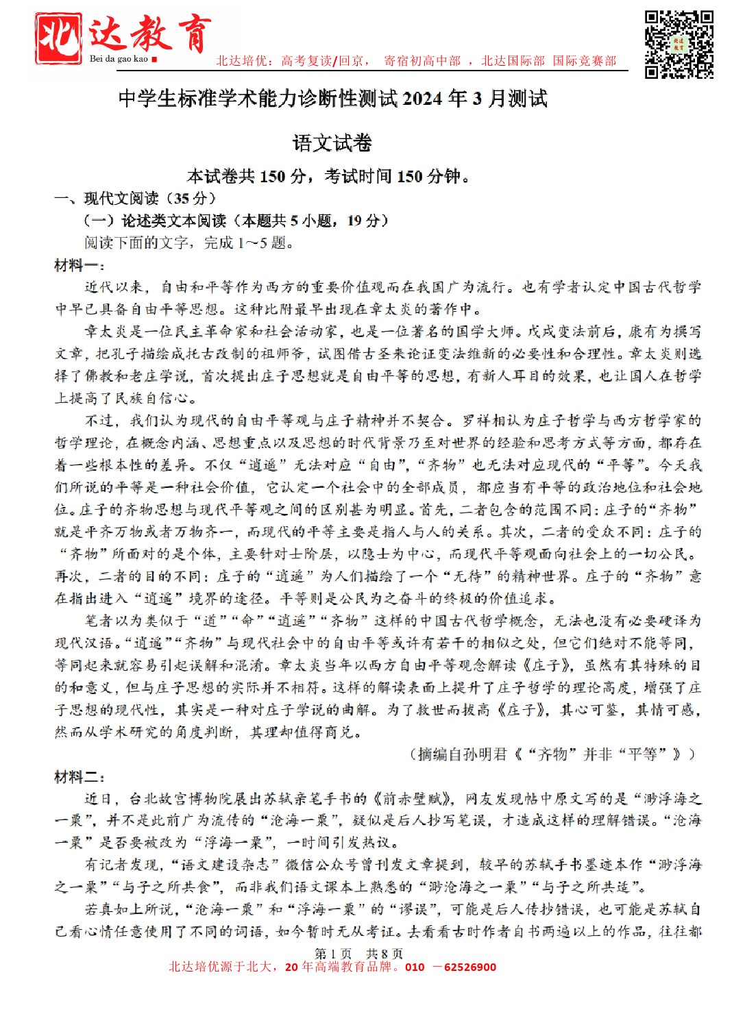 admw360教育整理了清华大学2024年3月中学生标准学术能力测试语文试卷及答案解析,分享给同学们。