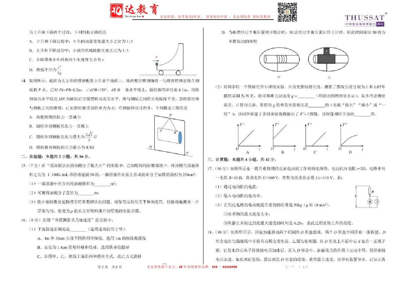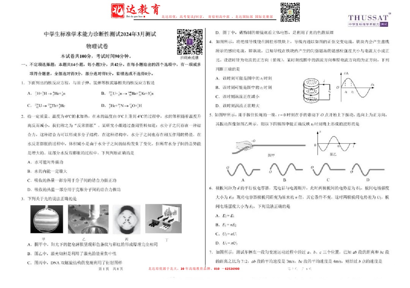 admw360教育整理了清华大学2024年3月中学生标准学术能力测试物理试卷及答案解析,分享给同学们。